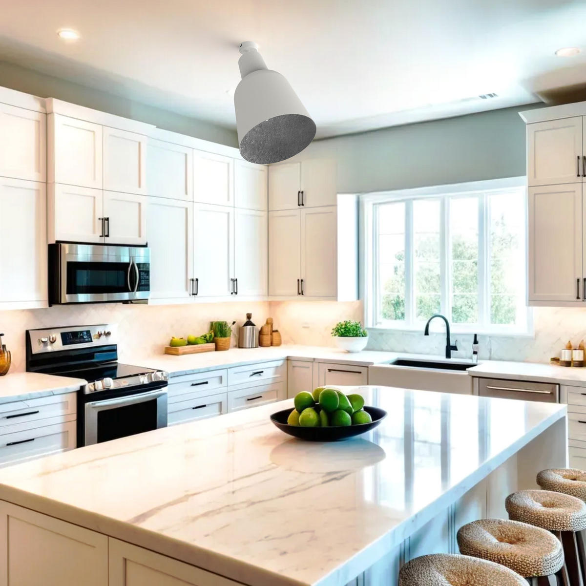 Вращение: Потолочный светильник оснащен шарниром, позволяющим наклонять и вращать его на 360°, обеспечивая широкий угол освещения для удовлетворения различных потребностей и идеально подстраиваясь под интерьер любого помещения.