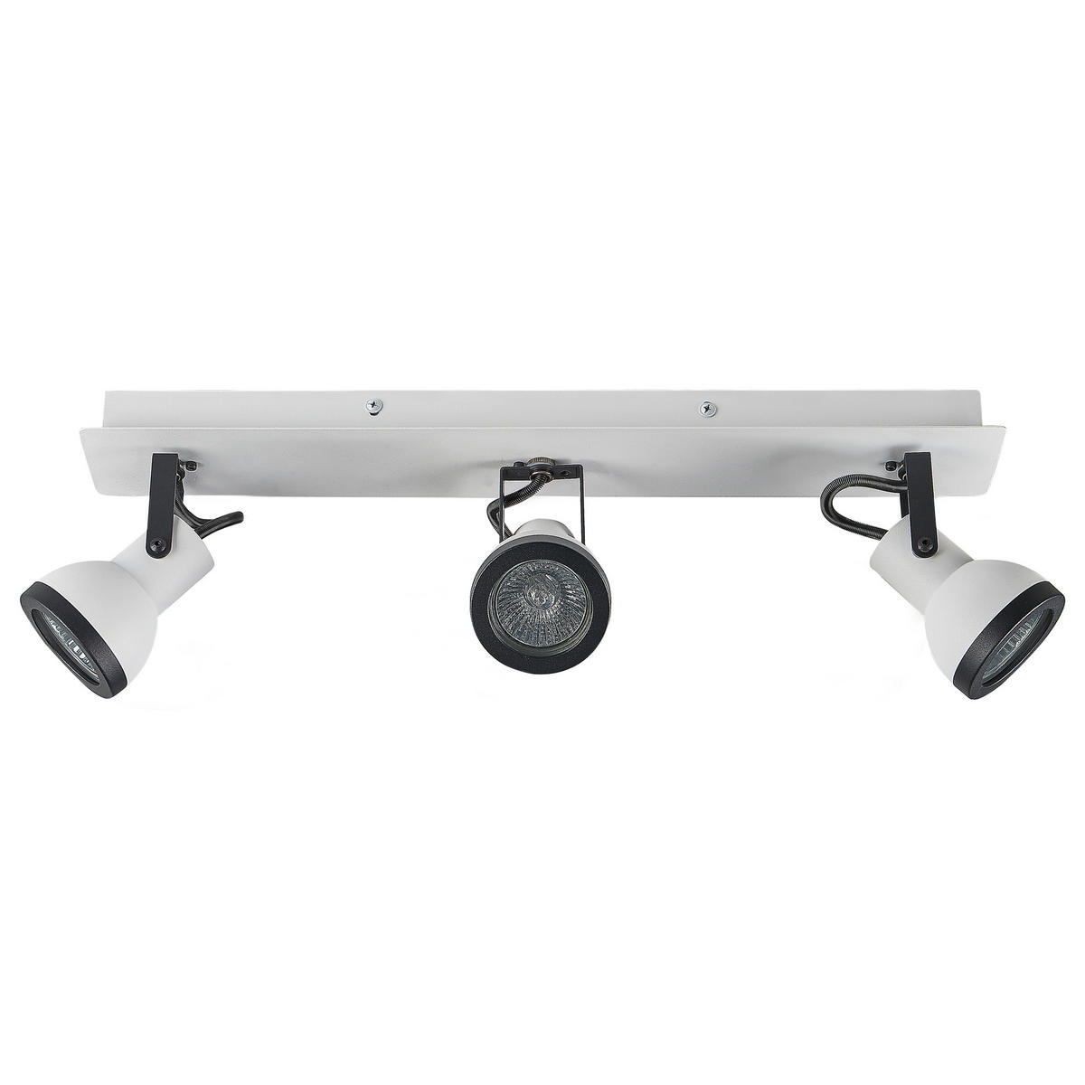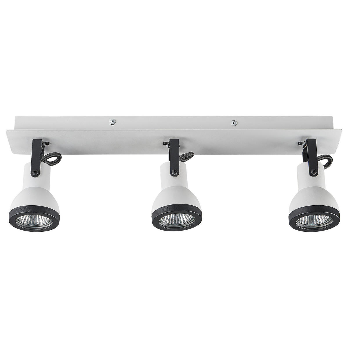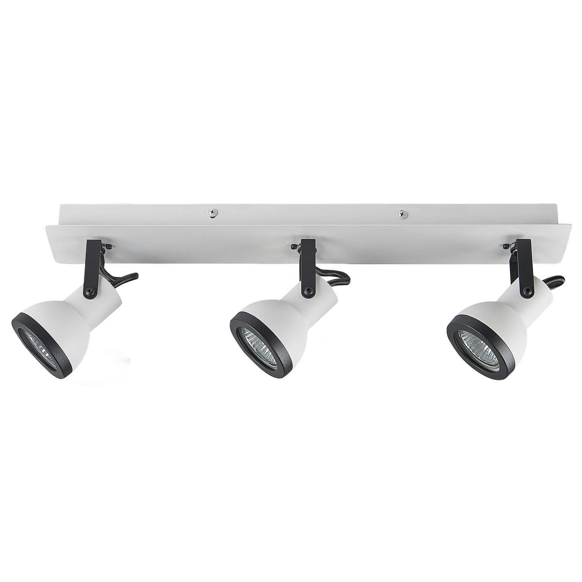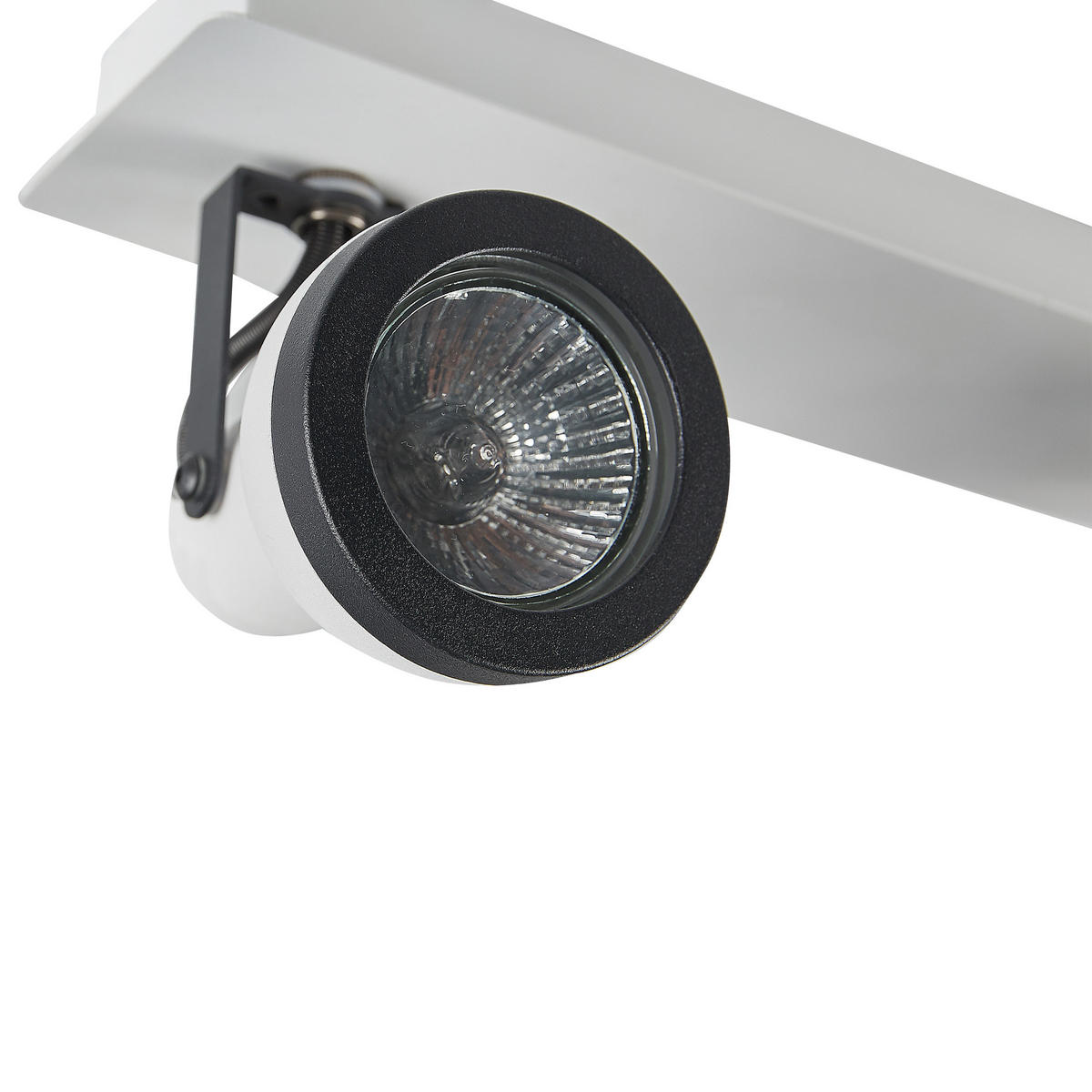 Металлический потолочный светильник на прямоугольной рейке. Повесьте этот светильник в гостиной или спальне, чтобы осветить пространство, или используйте регулируемые абажуры, чтобы направить свет на определенные элементы комнаты и привлечь внимание гостей. Изделие изготовлено из высококачественного металла и не требует особого ухода. Благодаря сочетанию белых и черных элементов светильник прекрасно впишется в интерьеры в современном или индустриальном стиле.