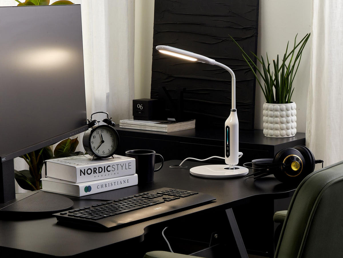 Современная функциональная лампа для чтения с регулируемым штативом. Осветите свое рабочее место этой функциональной офисной лампой. Современный дизайн и функциональность делают ее идеальным аксессуаром для работы за компьютером, чтения или учебы. Вы можете регулировать цветовую температуру с помощью сенсорной панели на основании лампы, а яркость - с помощью диммера. Благодаря гибкому держателю лампу легко держать в руках.