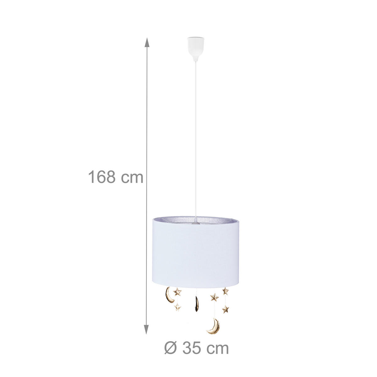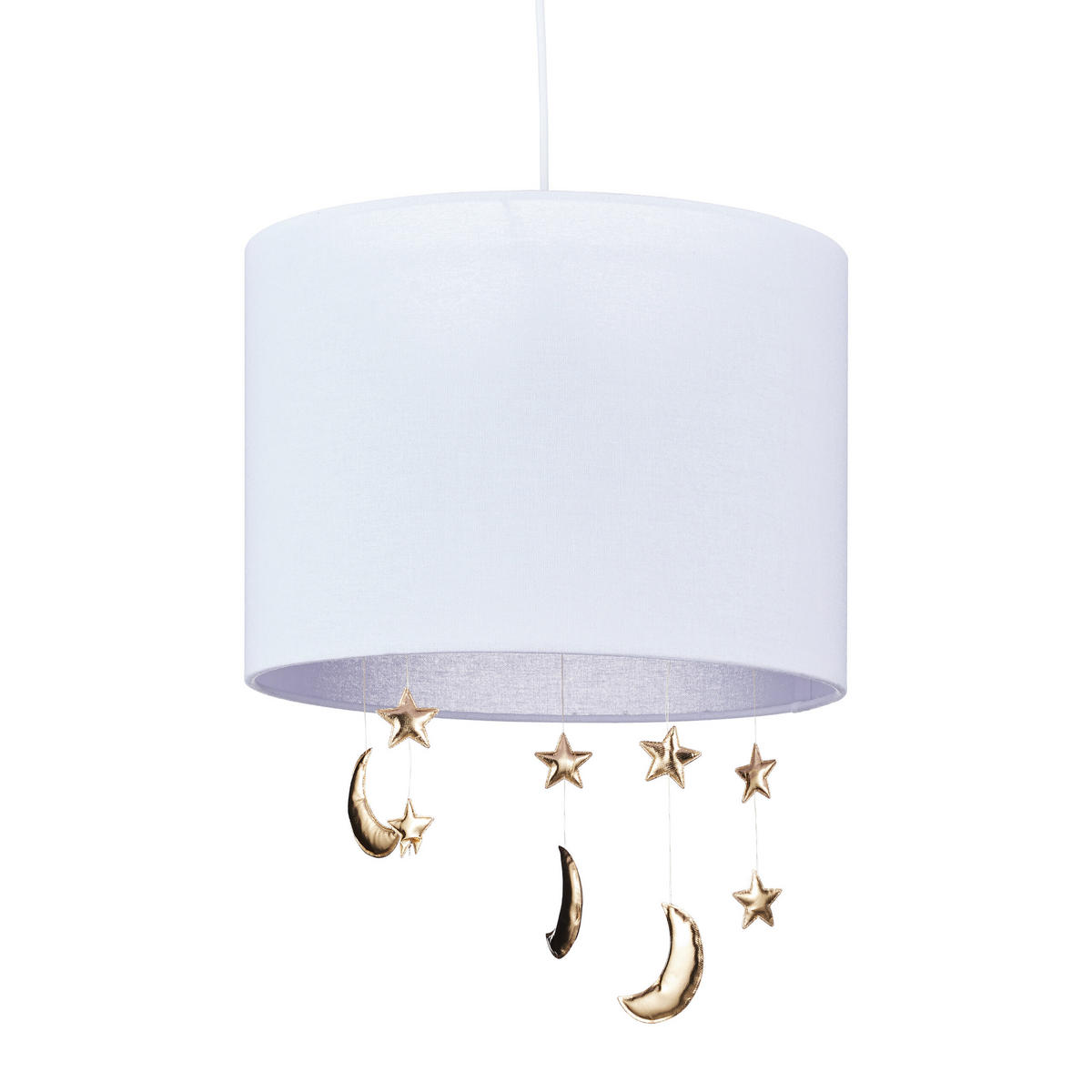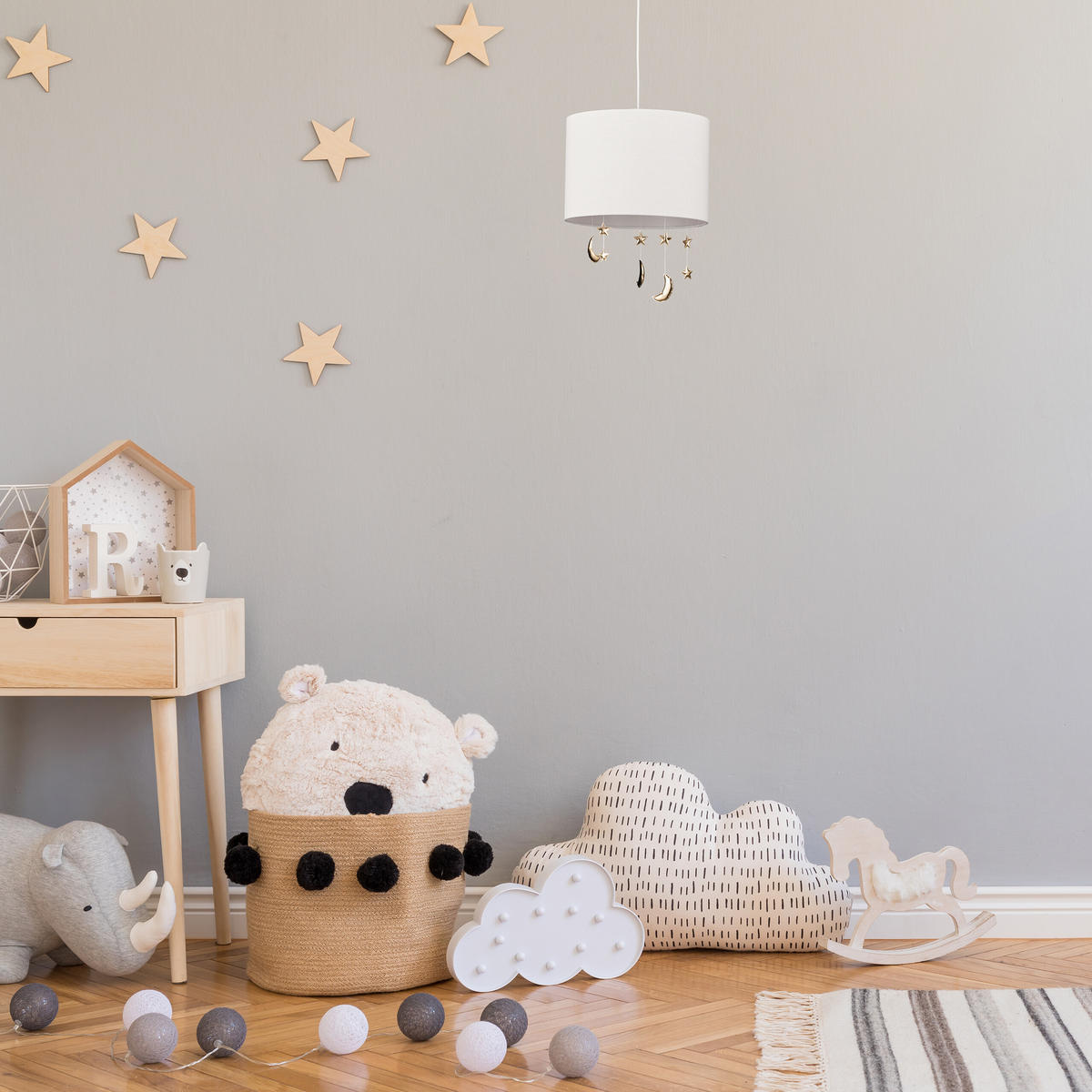 С помощью этого подвесного светильника вы не только украсите комнату вашего ребенка, но и порадуете его глаза. Круглый абажур подвесного светильника украшен свисающими лунами и звездами и порадует маленьких мечтателей. Свет мягко проникает сквозь белый абажур, создавая уютное и приятное освещение. С этим светильником для детской комнаты вы можете отправить своих малышей в страну снов после напряженного дня или обеспечить им мягкое пробуждение по утрам.