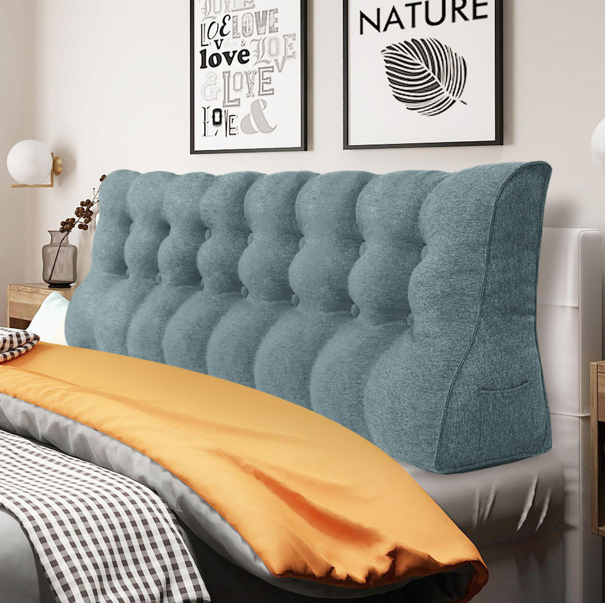 Эта большая контурная треугольная подушка для спины обеспечивает удобную и стабильную поддержку спины для двух или более человек одновременно, что делает ее идеальной для вас и вашей семьи, чтобы читать или смотреть телевизор, сидя в постели. Независимо от того, как вы наклоняетесь на эту подушку для чтения, она не сдвинется и не сломается так легко, как обычная подушка. Как подушка для изголовья, она не требует установки и проста в использовании, закрывая зазор между изголовьем и матрасом. Небольшие карманы по обеим сторонам клиновидной подушки легко хранят мелкие повседневные предметы, такие как мобильные телефоны, пульты дистанционного управления, очки и ручки. Подушки для кровати доступны в 9 стандартных размерах, чтобы соответствовать различным требованиям к ширине кровати. С одной из подушек длиной 200 см диван-кровать / односпальная кровать можно легко превратить в диван / кушетку. Эту подушку часто используют как подушку для общежития, глубокую спинку дивана, подушку для кемпера и т. д. Она также может помочь облегчить такие проблемы, как изжога и послеоперационная боль в спине. Еще больше возможностей для использования ждут своего открытия.