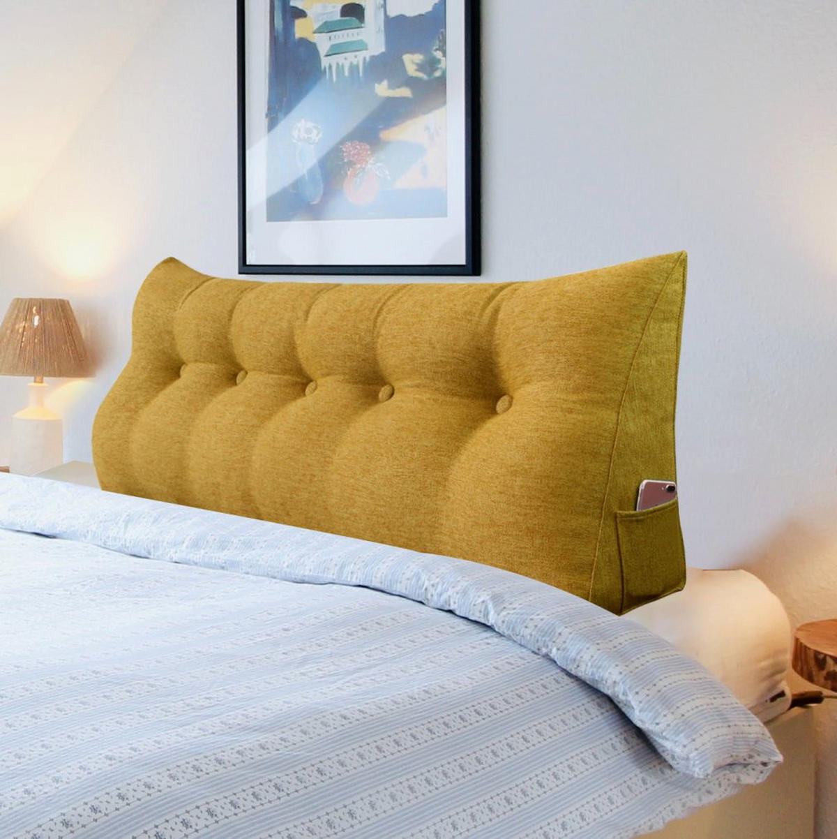 Эта большая треугольная подушка для спины обеспечивает удобную и стабильную поддержку спины для двух или более человек одновременно, что делает ее идеальным вариантом для вас и вашей семьи, чтобы читать или смотреть телевизор, сидя в постели. Независимо от того, как вы наклоняетесь на эту подушку для чтения, она не сдвинется и не сломается так легко, как обычная подушка. Как подушка для изголовья, она не требует установки и проста в использовании, закрывая зазор между изголовьем и матрасом. Небольшие карманы по обеим сторонам клиновидной подушки легко вмещают небольшие повседневные предметы, такие как мобильные телефоны, пульты дистанционного управления, очки и ручки. Подушки для кровати доступны в 9 стандартных размерах, чтобы соответствовать различным требованиям к ширине кровати. С одной из подушек длиной 200 см диван-кровать / односпальная кровать можно легко превратить в диван / кушетку. Эту подушку часто используют в качестве подушки для общежития, глубокой спинки дивана, подушки для прицепа на колесах, подушки для ограждения детской кроватки и т. д. Она также может помочь облегчить такие проблемы, как изжога и послеоперационная боль в спине. Еще больше возможностей для использования ждут своего открытия.