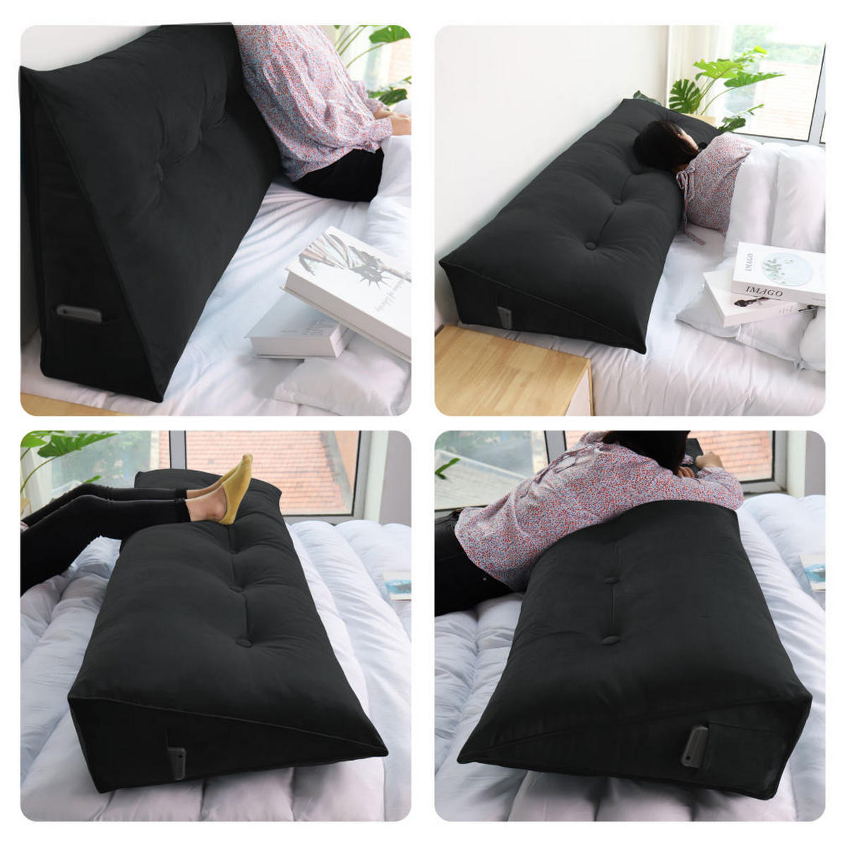 Эта большая треугольная подушка для спины обеспечивает удобную и стабильную поддержку спины для двух или более человек одновременно, что делает ее идеальным вариантом для вас и вашей семьи, чтобы читать или смотреть телевизор, сидя в постели. Независимо от того, как вы наклоняетесь на эту подушку для чтения, она не сдвинется и не сломается так легко, как обычная подушка. Как подушка для изголовья, она не требует установки и проста в использовании, закрывая зазор между изголовьем и матрасом. Небольшие карманы по обеим сторонам клиновидной подушки легко вмещают небольшие повседневные предметы, такие как мобильные телефоны, пульты дистанционного управления, очки и ручки. Подушки для кровати доступны в 9 стандартных размерах, чтобы соответствовать различным требованиям к ширине кровати. С одной из подушек длиной 200 см диван-кровать / односпальная кровать можно легко превратить в диван / кушетку. Эту подушку часто используют в качестве подушки для общежития, глубокой спинки дивана, подушки для прицепа на колесах, подушки для ограждения детской кроватки и т. д. Она также может помочь облегчить такие проблемы, как изжога и послеоперационная боль в спине. Еще больше возможностей для использования ждут своего открытия.