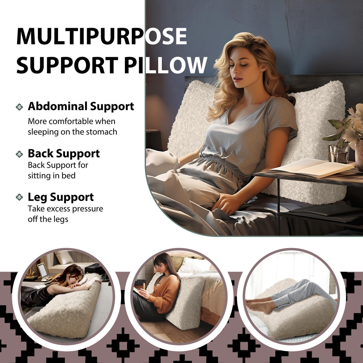 Когда вы сидите в постели, читая или смотря телевизор, эта большая трехмерная треугольная подушка для спинки может обеспечить удобную, стабильную и достаточно эластичную поддержку спины для нескольких человек одновременно. Независимо от того, как вы наклоняетесь на эту подушку для чтения, она не соскользнет и не сломается, как обычные подушки для кровати. Как подушка для изголовья, она не требует установки, проста в использовании и закрывает зазор между изголовьем и матрасом. Она поставляется в девяти стандартных размерах, чтобы соответствовать различной ширине кроватей. Помимо прочего, подушка длиной 200 см может легко превратить кушетку / двуспальную кровать в диван / кушетку. Кроме того, эту подушку можно использовать во многих сценариях, таких как: Ее можно использовать для различных целей, например, в качестве подушки для комнаты в общежитии, глубокой спинки дивана, подушки для прицепа на колесах, подушки для детской кроватки и т. д. Она также может помочь облегчить такие проблемы, как кислотный рефлюкс и боль в спине после операции. Вас ждут еще больше возможностей использования.