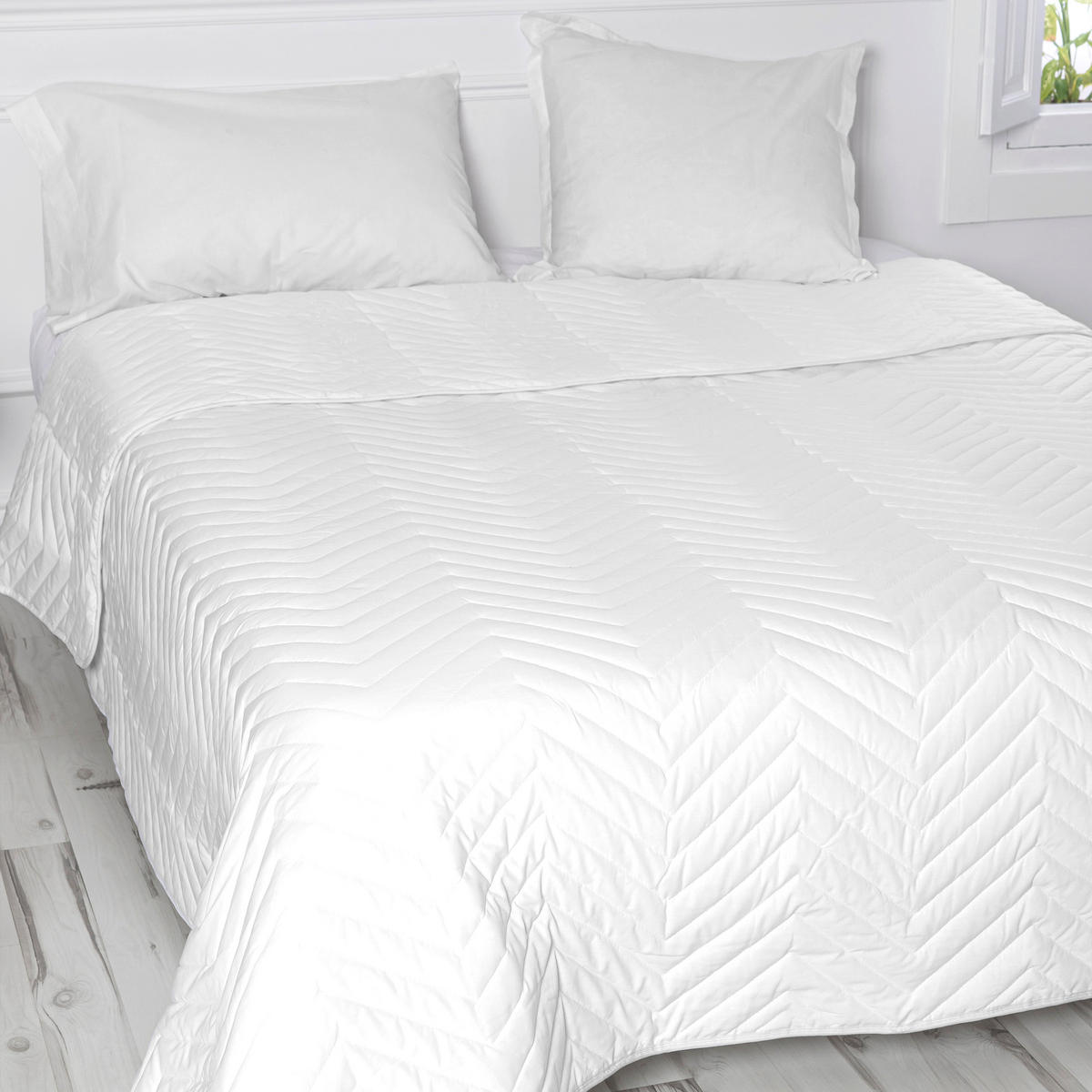 Белое одеяло BASIC Arista подарит вам ощущение блаженства благодаря сочетанию яркого цвета, мягкости материала и классического стеганого узора елочка, которые обеспечат вам лучший ночной сон.