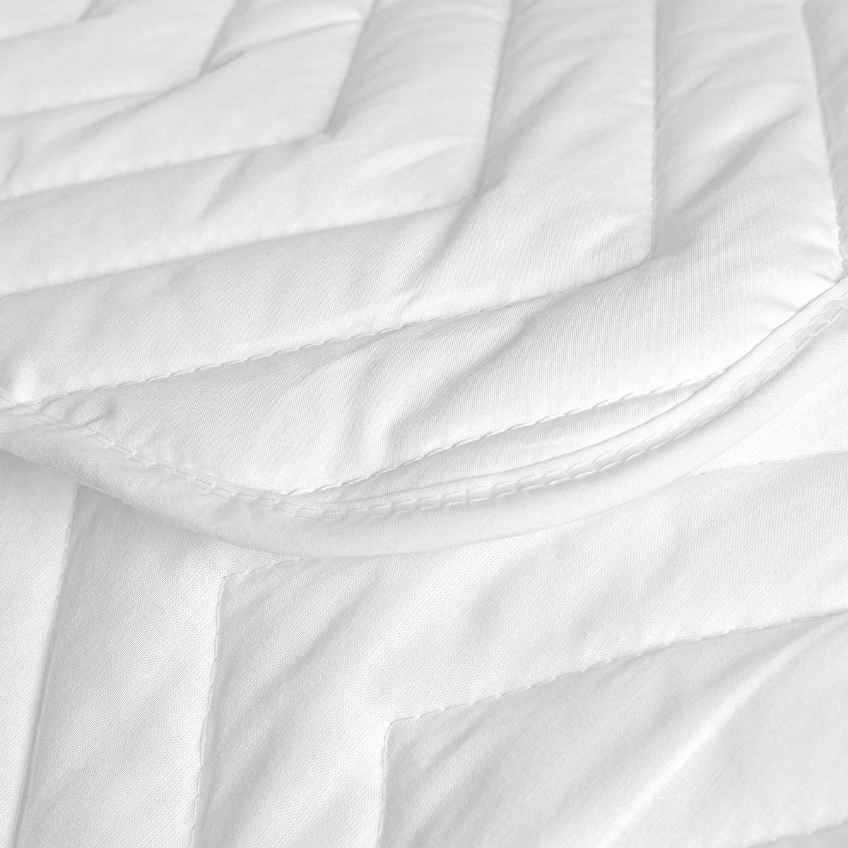 Двустороннее одеяло в двух цветах с косой бейкой в тон. Одеяло с шевронным узором. Передняя и задняя части: 100% хлопок с мягкой отделкой. Идеально подходит для переходного периода.