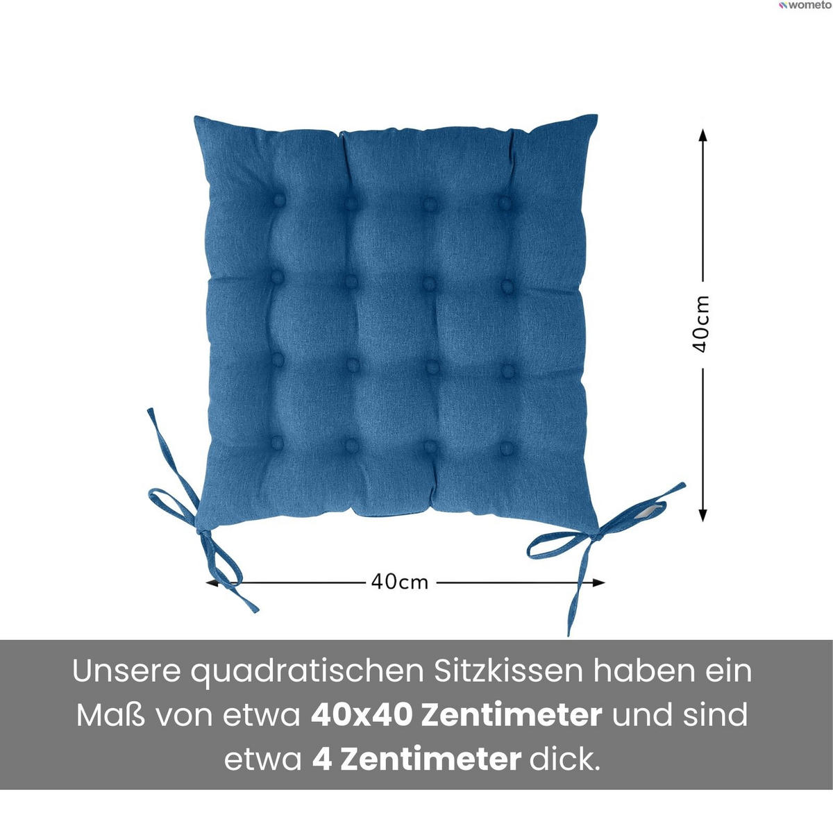 Подушка сиденья стула / подушка сиденья для стульев: Мягкая, модная подушка сиденья стула 40x40 с 16-кратной простежкой, размером приблизительно 40x40 см и высотой приблизительно 4 см. Будь то на вашей новой садовой мебели на террасе, на вашей деревянной скамейке перед входной дверью или на вашем комплекте сидений в столовой. С этой подушкой для стула 40x40 вы не только повысите комфорт сидения, но и визуально улучшите свою мебель. Квадратную подушку сиденья 40x40 с ремнями можно прикрепить к спинке; петля предотвращает скольжение подушки сиденья стула. Предпочитаете ли вы интерьер в деревенском или современном стиле, эти подушки для скамей сделают любую столовую или патио более яркими и уютными, будь то прекрасные летние вечера или уютное теплое помещение зимой. Прочные подушки для сидений идеально подходят для использования в помещении и на улице (под навесом) и имеют 16-нитевую стежку.