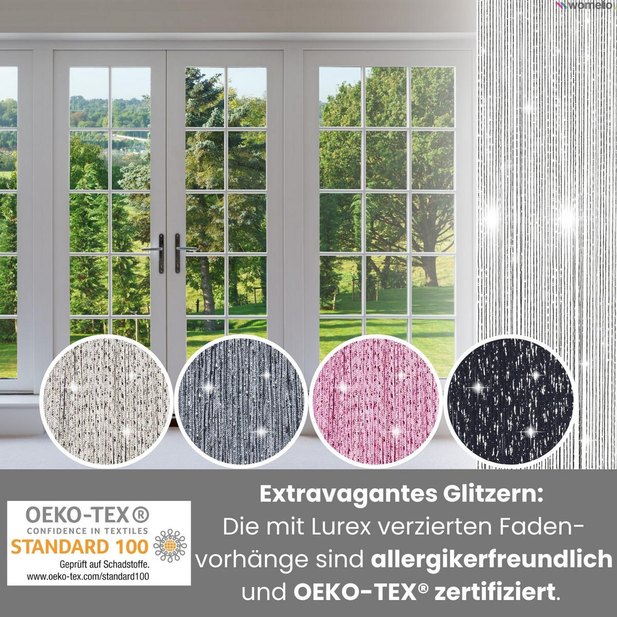 - Нитевая штора Люрекс прибл. 90x245 см, с эффектом блеска и отделкой из люрекса, блестящая и элегантная, с карманом на штанге