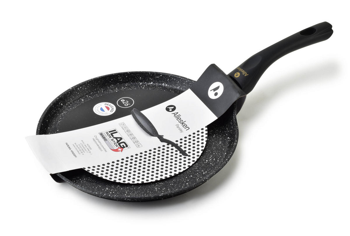 Сковорода для блинов PARSLEY - это высококачественная алюминиевая сковорода, специально разработанная для приготовления вкуснейших блинов. Высота: 1,70 см, ширина: 46,50 см, длина: 26 см. Сковорода предлагает достаточно места для приготовления тонких и нежных блинов. Сковорода элегантного черного цвета гармонично впишется в интерьер любой кухни. С этой высококачественной кухонной утварью вы без труда приготовите идеальные блины.