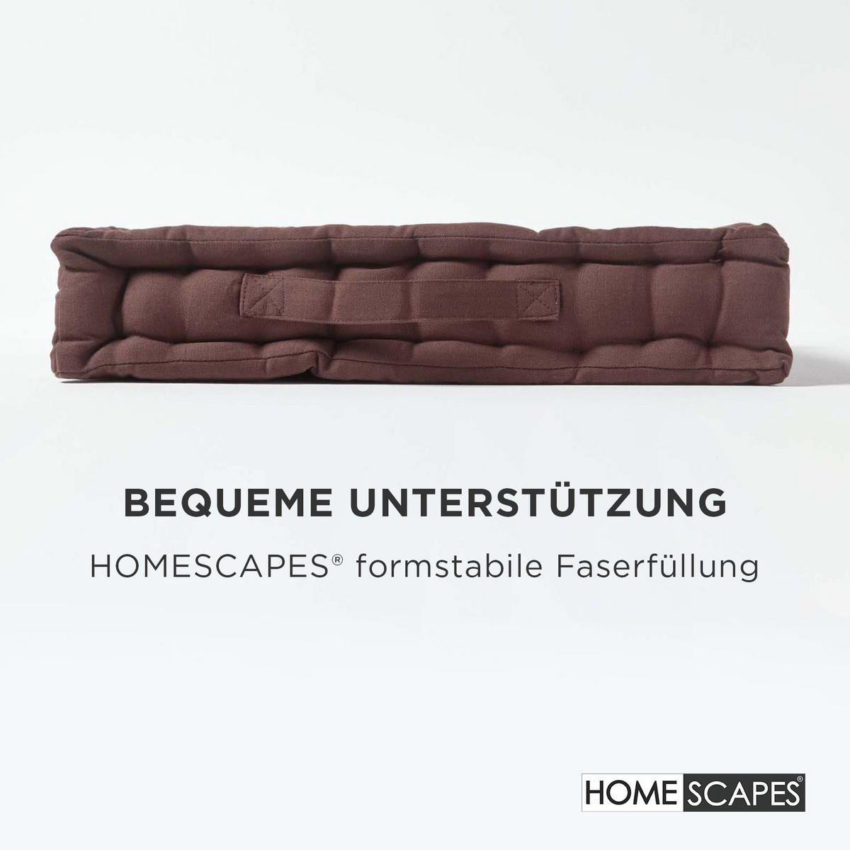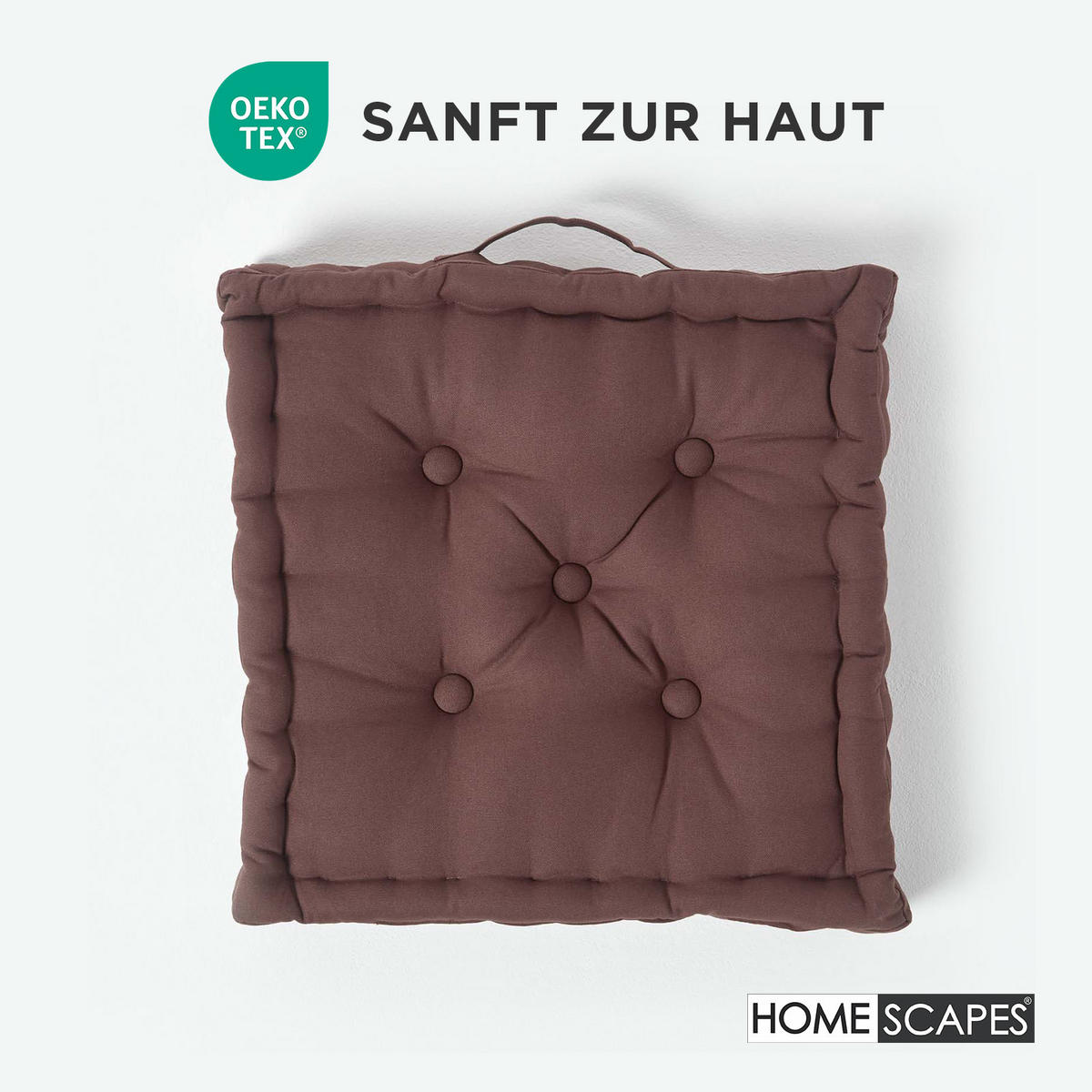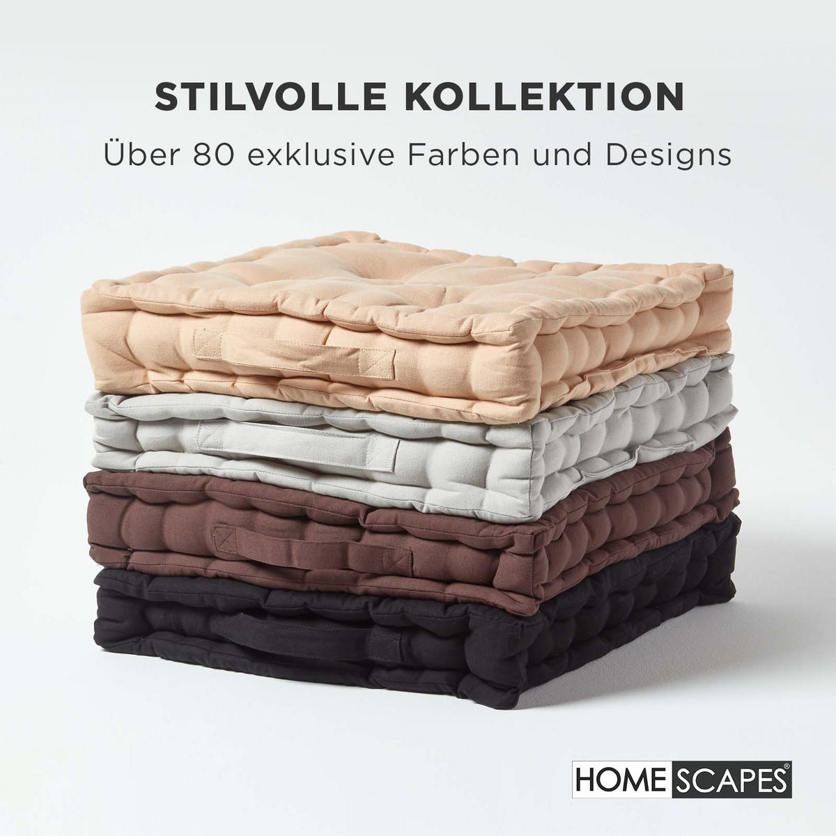 Простые подушки сиденья от Homescapes сочетают в себе стильный вид, комфорт и удобство. Простые подушки для матраса доступны в двух размерах и во многих привлекательных цветах для любого стиля интерьера. Чехол из чистого хлопка щедро наполнен прочным полиэфирным волокном и имеет практичную ручку для переноски. Благодаря этому подушки можно использовать в качестве толстых подушек для стульев, удобных подушек для кресел, стульев или диванов, удобных напольных подушек для всех возрастов или уютных подушек для сидений на садовых стульях и скамейках.