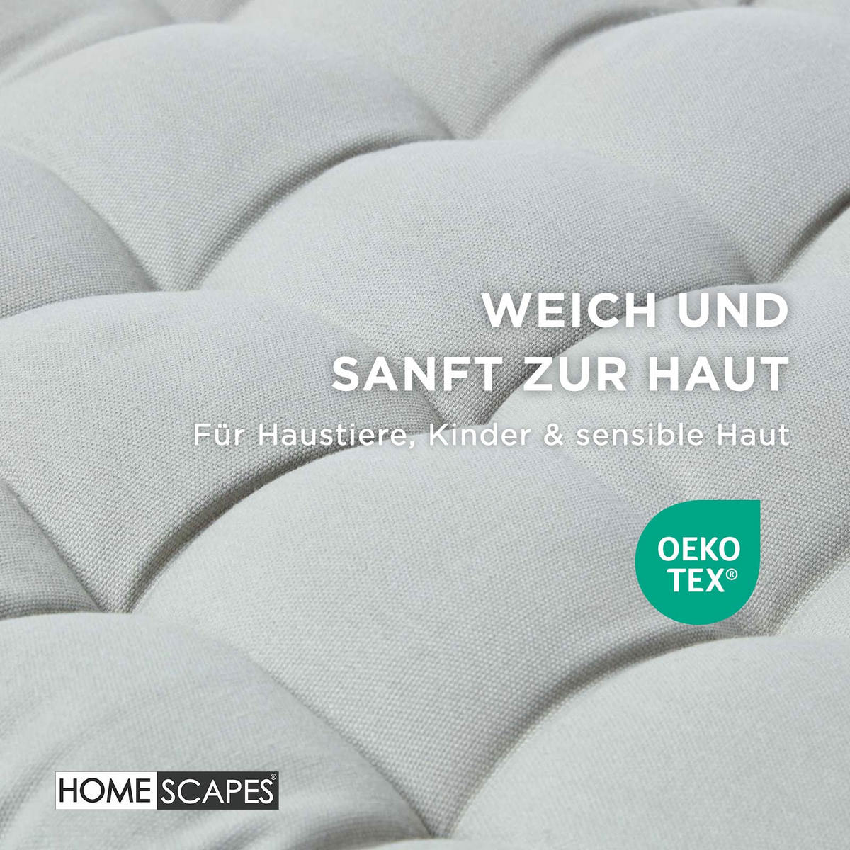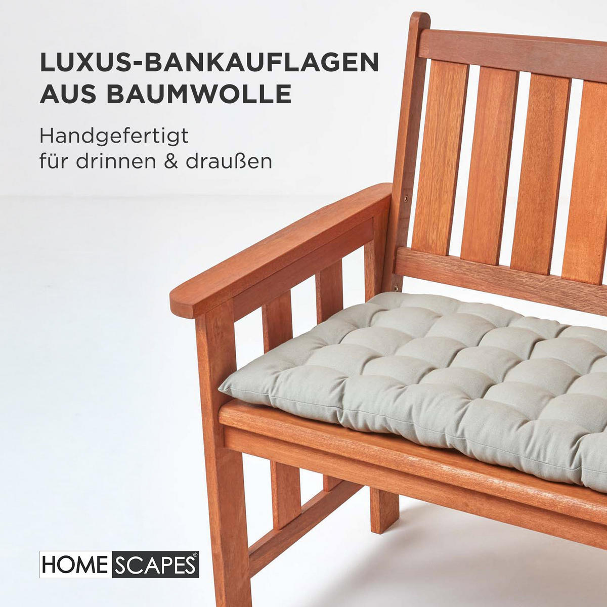 Подушки для скамеек Homescapes доступны в привлекательных цветах и двух размерах: 108 x 42 см для двухместных и 143 x 48 см для трехместных скамеек. Подушки для скамеек просты в уходе, их можно стирать в стиральной машине, и они идеально подходят для повседневного использования. Благодаря чистому хлопковому чехлу подушки могут Однако они могут немного садиться. Обратите внимание, что подушки не являются водонепроницаемыми и не должны оставляться без защиты от непогоды, когда не используются.