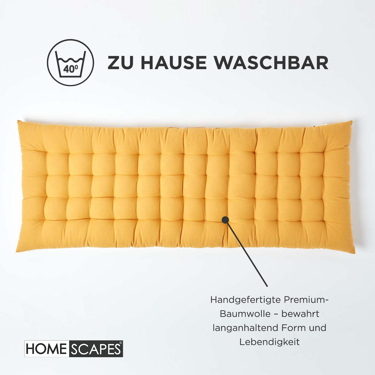 Подушки для скамеек Homescapes доступны в привлекательных цветах и двух размерах: 108 x 42 см для двухместных и 143 x 48 см для трехместных скамеек. Подушки для скамеек просты в уходе, их можно стирать в стиральной машине, и они идеально подходят для повседневного использования. Благодаря чистому хлопковому чехлу подушки могут Однако они могут немного садиться. Обратите внимание, что подушки не являются водонепроницаемыми и не должны оставляться без защиты от непогоды, когда не используются.