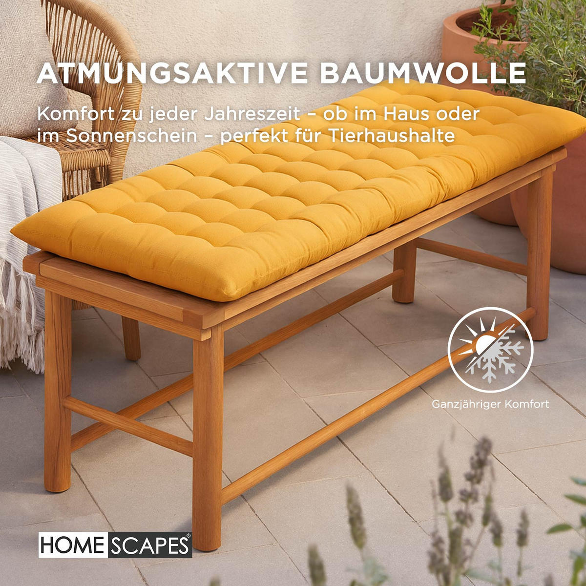 Балкон, терраса или сад, кухня, столовая или зимний сад - простые подушки для скамьи от Homescapes придадут вашему открытому пространству и жилым помещениям свежий вид и создадут уютную атмосферу.
