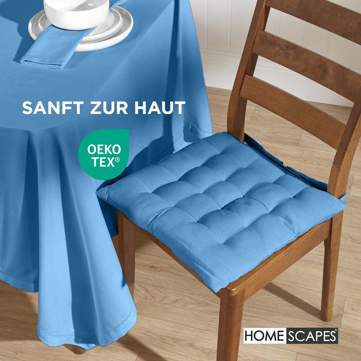 Расставьте элегантные акценты с помощьюподушек для стульев синего цвета. Мягкий небесно-голубой оттенок придаст вашему дому спокойную и гармоничную атмосферу и идеально впишется в современный, морской или скандинавский интерьер - будь то обеденный стол, кухня или терраса.