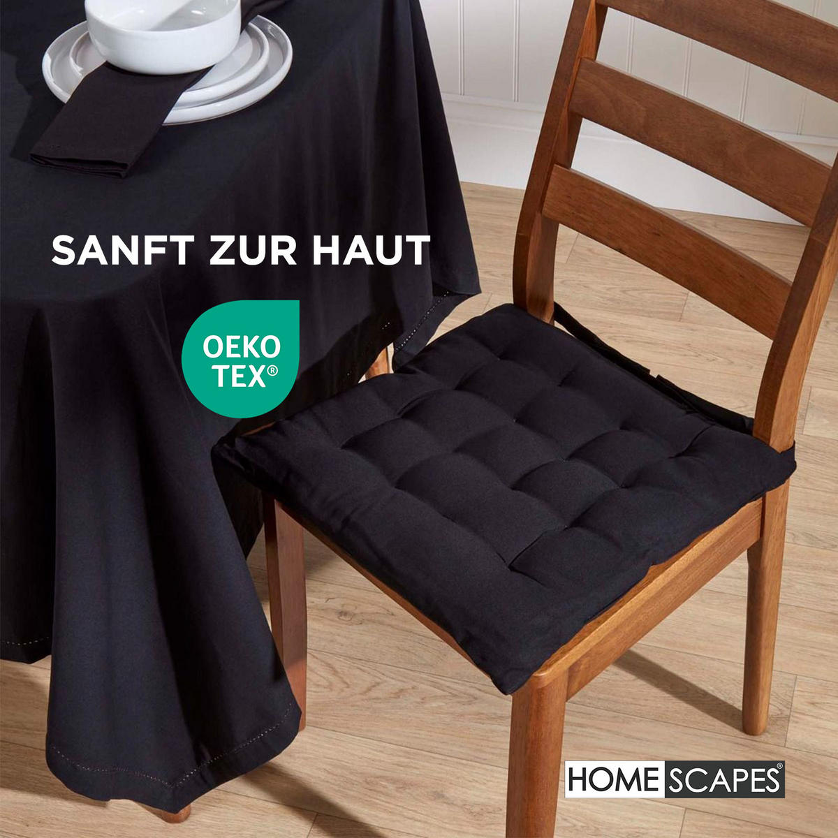 Придайте своим стульям изысканный, неподвластный времени штрих с помощьючерных подушек для стульев. Простой дизайн идеально вписывается в современные, классические или минималистичные интерьеры и обеспечивает дополнительный комфорт - будь то за обеденным столом, на кухне или на террасе.