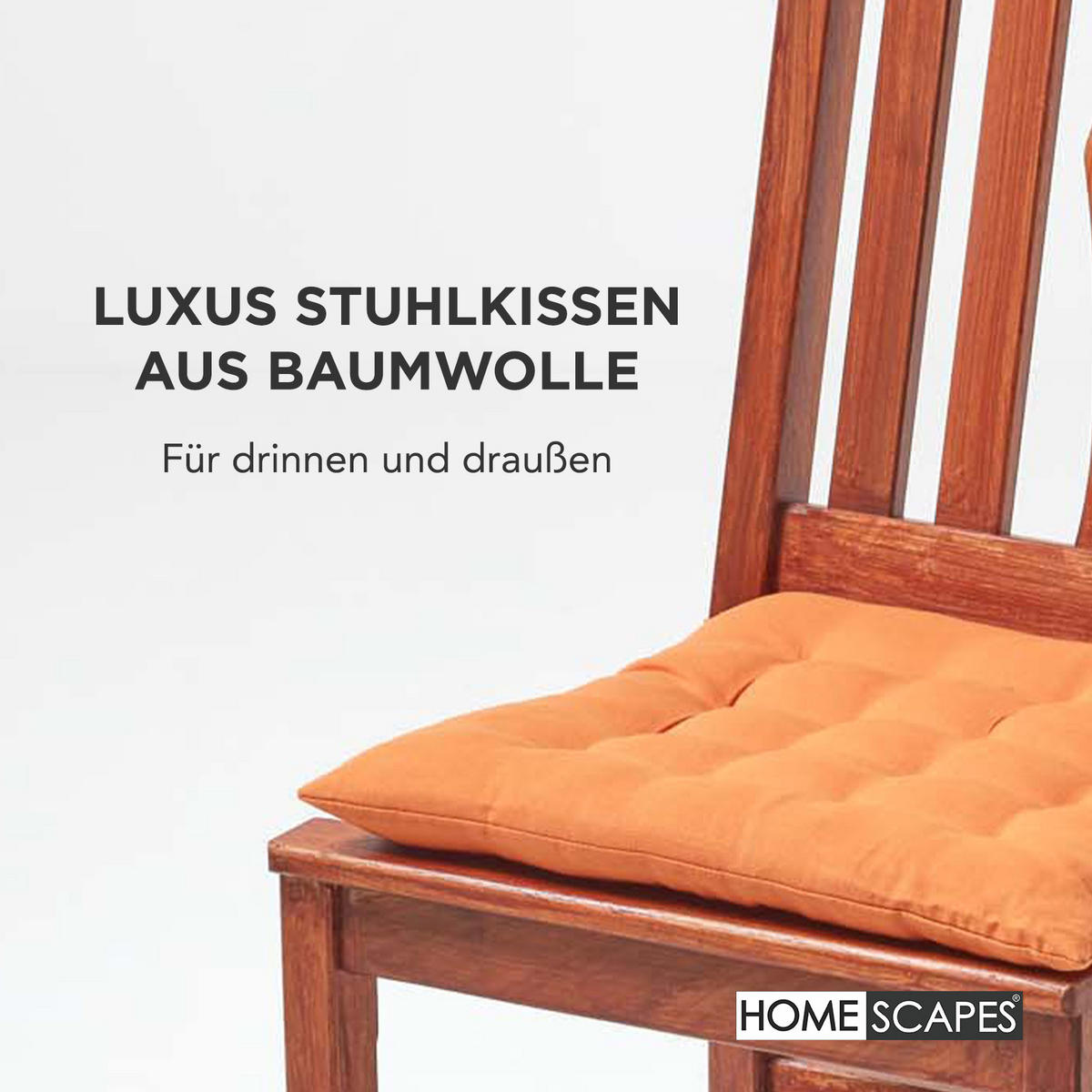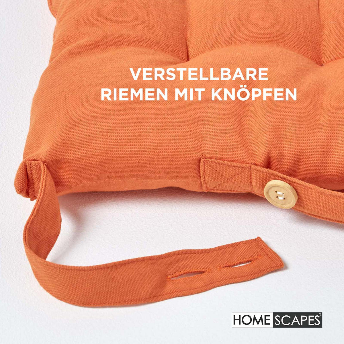 Наши подушки для сидений изготовлены из100% хлопкаи имеют прочный иудобный волокнистый наполнитель.Стеганый дизайн ручной работысоздает высококачественный, фактурный вид. Вместо традиционных петель подушки для стульев Homescapes оснащены практичной застежкой на кнопки, что обеспечивает надежную фиксацию и аккуратный внешний вид. Подушки размером 40 х 40 см подойдут для большинства стульев для столовой, кухонных стульев или садовой мебели. Наши подушки для сидений можно стирать в стиральной машине при температуре 40 °C. Обратите внимание, что из-за натурального хлопка возможна небольшая усадка. Подушки, сертифицированные OEKO-TEX, доступны во многих цветах и по отдельности, в наборах по 4 или 6 штук. Ассортимент дополняют подушки для скамеек, скатерти и декоративные чехлы для подушек. Хотя подушки для стульев подходят для использования на улице, их следует хранить в сухом месте, когда они не используются.