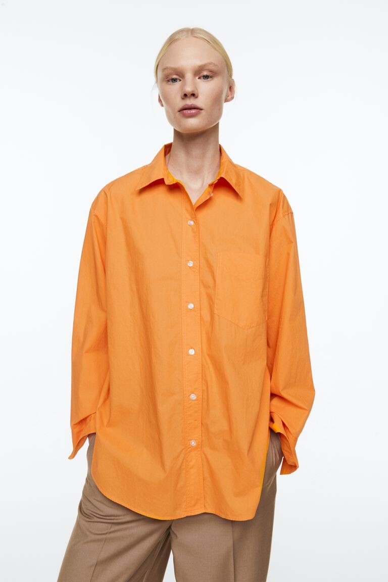 Рубашка из хлопкового поплина H&M, апельсин 2 579₽