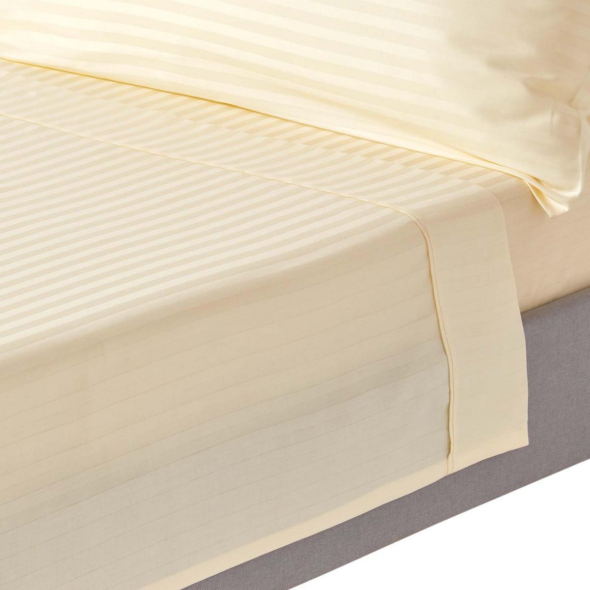 Поставляются в подходящем тканевом чехле. Элегантные полосатые простыни из дамаска также доступны на резинке с круговой резинкой. Откройте для себя наши пододеяльники и наволочки в тон.