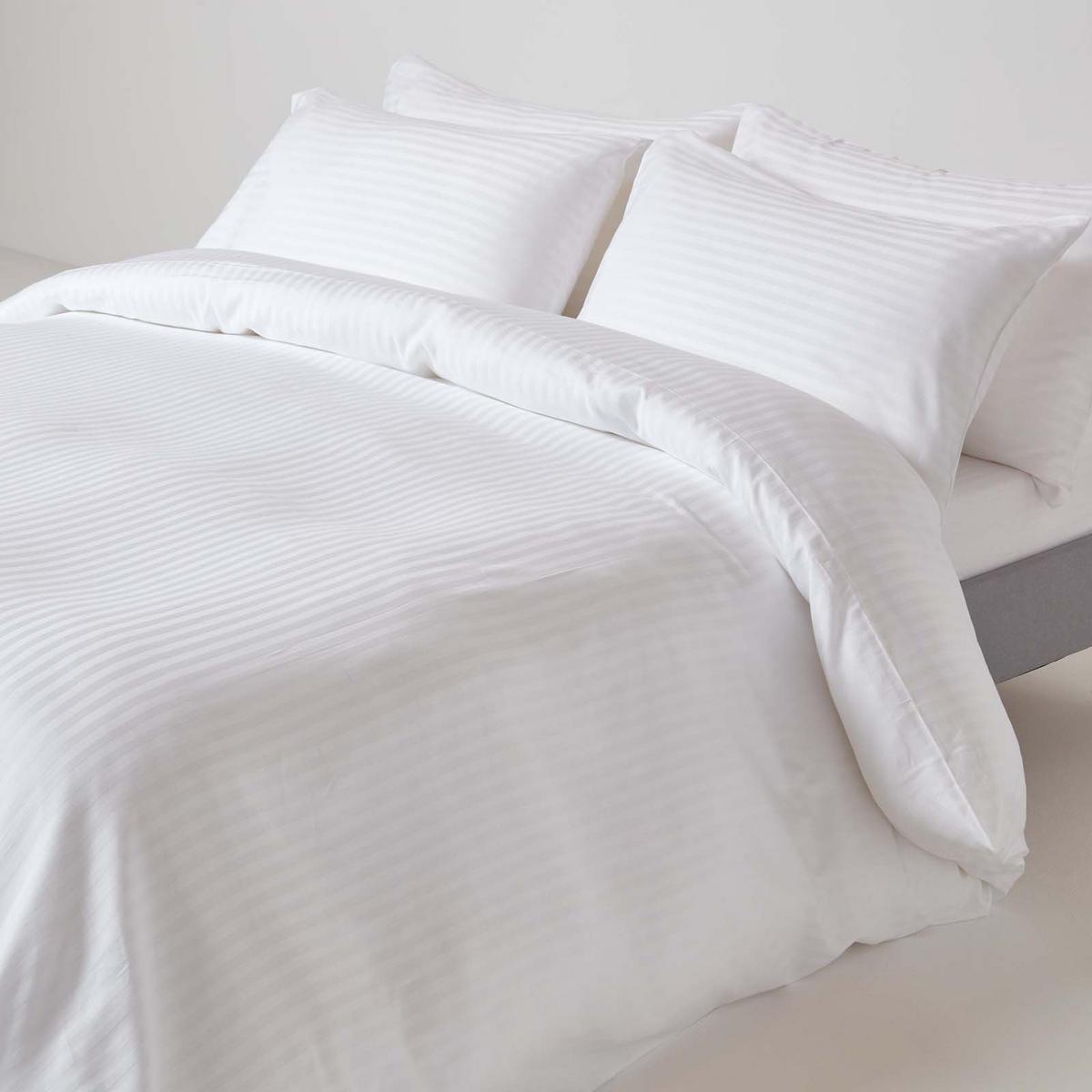 Поставляются в подходящем тканевом чехле. Элегантные полосатые простыни из дамаска также доступны на резинке с круговой резинкой. Откройте для себя наши пододеяльники и наволочки в тон.