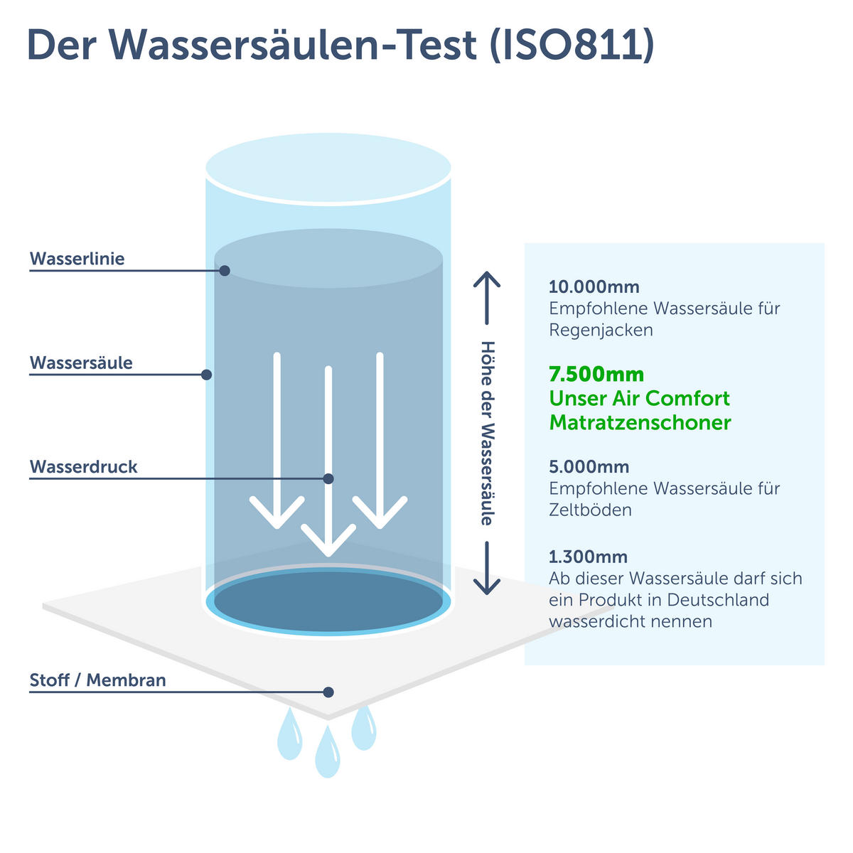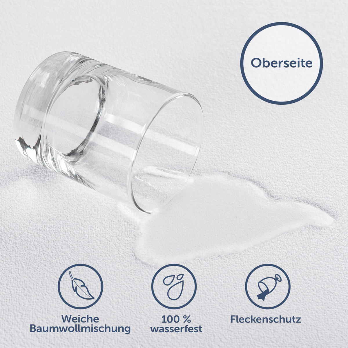 Наслаждайтесь 100% защитой от влаги с наматрасником Blumtal. Благодаря высококачественному покрытию из термополиуретана (ТПУ), водонепроницаемый наматрасник надежно и безопасно защищает ваш матрас от влаги и грязи. Благодаря 80% содержанию хлопка вы будете наслаждаться приятным мягким сном. Хлопок способствует воздухопроницаемости наматрасника и его быстрому высыханию. Наш наматрасник особенно тихий, обеспечивая спокойный сон без посторонних шумов. Благодаря сбалансированному составу ткани и махровой поверхности наматрасник не шуршит. Наши наматрасники Blumtal не скользят по матрасу. Благодаря прочному натяжению по всем краям они идеально подходят и надежно защищают ваш матрас. Для тщательной очистки наш наматрасник можно стирать в стиральной машине при температуре до 90 °C и сушить в сушильной машине. Таким образом, удаляются даже стойкие пятна.