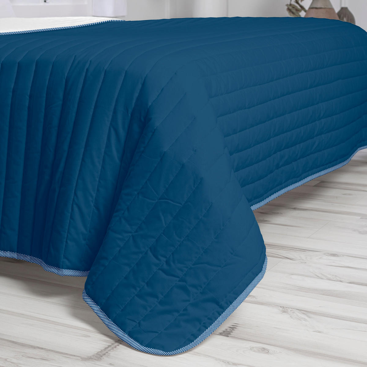 Добавить нотку роскоши и изысканности в свою спальню, сохранив при этом простоту и сдержанность, проще простого, чем застелить кровать с ног до головы покрывалом Navy Dash в бело-темно-синей цветовой гамме.