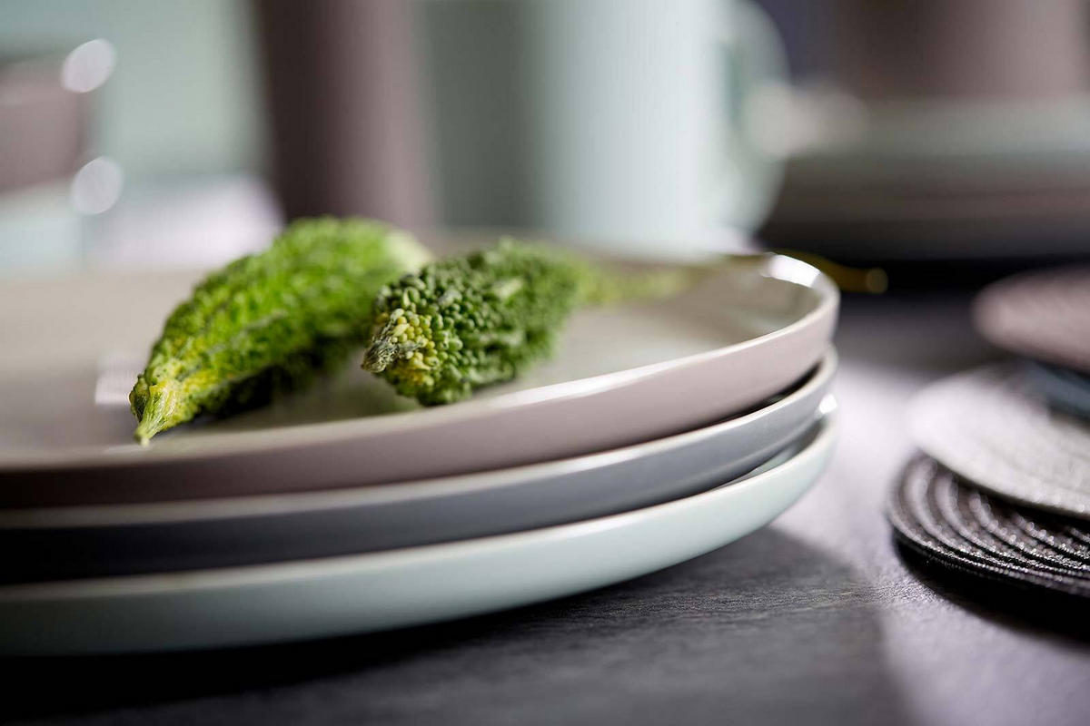 Формальный пуризм Jasper гармонично дополняется изысканной текстурой и цветовым решением: внутренняя и верхняя поверхности посуды, как обычно, покрыты глянцевой глазурью, а внешняя и нижняя - довольно необычной матовой глазурью, которая своим сдержанным видом и теплой, шероховатой мягкой поверхностью в значительной степени подчеркивает нетрадиционный облик и ощущение Jasper.