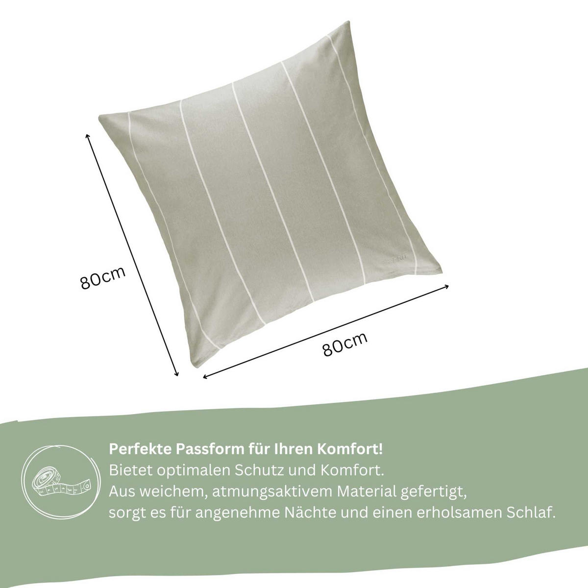 Ощутите максимальный комфорт сна с роскошным постельным бельем ESPRIT. Это высококачественное постельное белье изготовлено из 100% хлопка и является частью инициативы Better Cotton Initiative, которая поддерживает экологичное производство хлопка. Комплект доступен в различных размерах: 135x200 см с одной наволочкой 80x80 см, 140x200 см (австрийский размер) с одной наволочкой 70x90 см, 155x220 см с одной наволочкой 80x80 см и 200x200 см с двумя наволочками 80x80 см. Спортивные вертикальные полосы и элегантная вышивка логотипа на наволочке придадут вашей спальне современный и свежий вид. Постельное белье доступно в четырех стильных цветах: сером, антрацитовом, бежевом и зеленом. Потайная молния обеспечивает легкость одевания. Дополните свой комплект подходящими наволочками размером 40 x 40 см (2 шт.), 40 x 80 см (2 шт.) и 80 x 80 см (1 шт.). Стирать при температуре 60 °C и сушить в стиральной машине - легко ухаживать. Подарите себе эту роскошь и улучшите качество сна с ESPRIT.