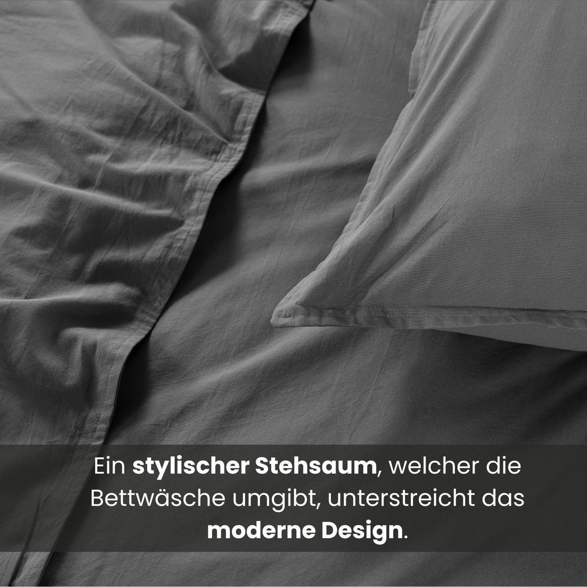 Специальный процесс стирки делает высококачественную хлопчатобумажную ткань нашего постельного белья Renforcé особенно мягкой и гладкой на ощупь и придает ей элегантный, состаренный вид. Благодаря тонким изменениям в процессе стирки Stonewashing каждое изделие выглядит уникально. Наше прочное постельное белье Renforcé изготовлено из 100% хлопка. Оно регулирует температуру и хорошо впитывает влагу. Это, в свою очередь, обеспечивает максимальный комфорт во время сна. Постельное белье не вызывает аллергии и раздражения кожи, легко в уходе, его можно стирать в стиральной машине при температуре до 60 °C и сушить в стиральной машине. Наволочки и пододеяльники оснащены гладкой застежкой-молнией для легкой смены комплекта.