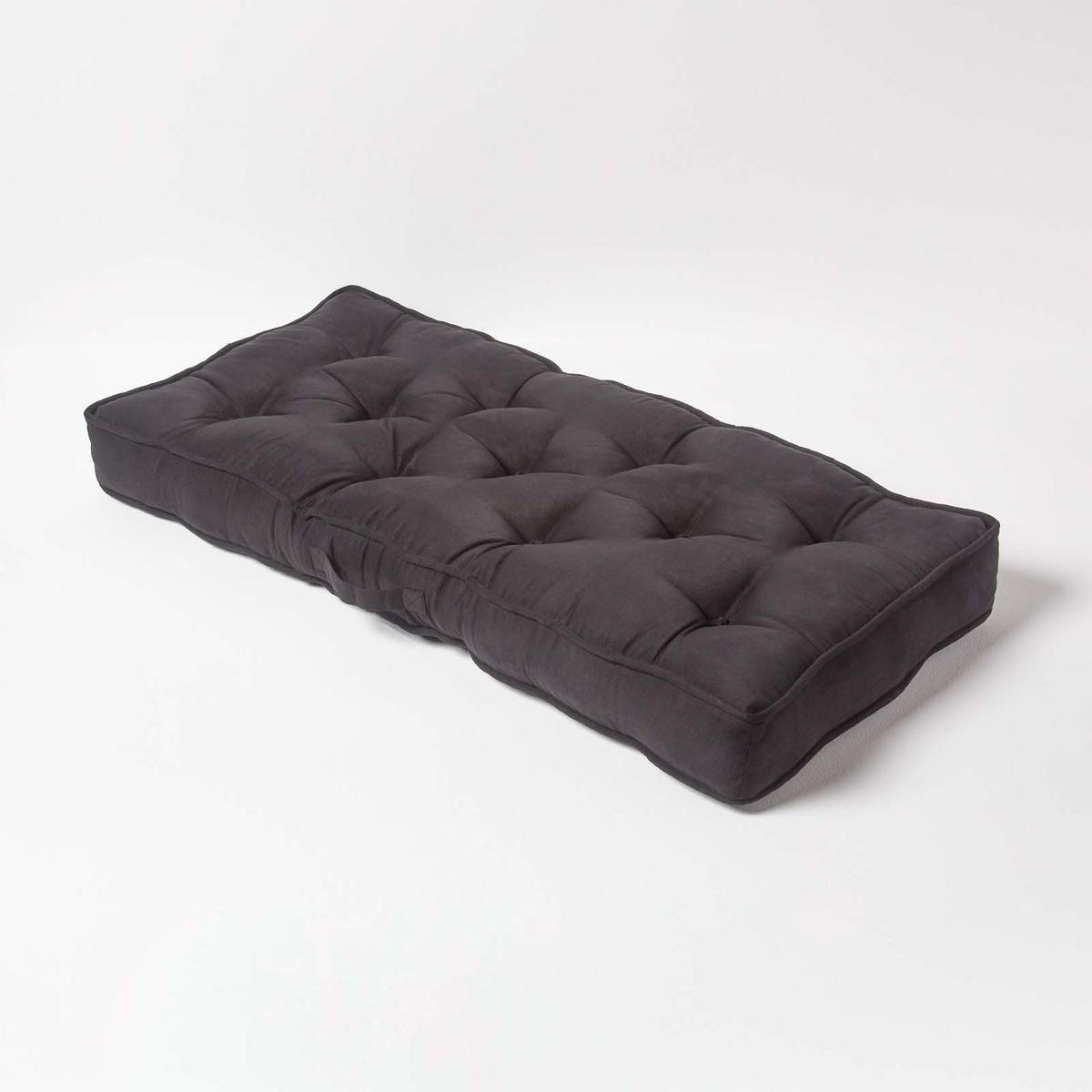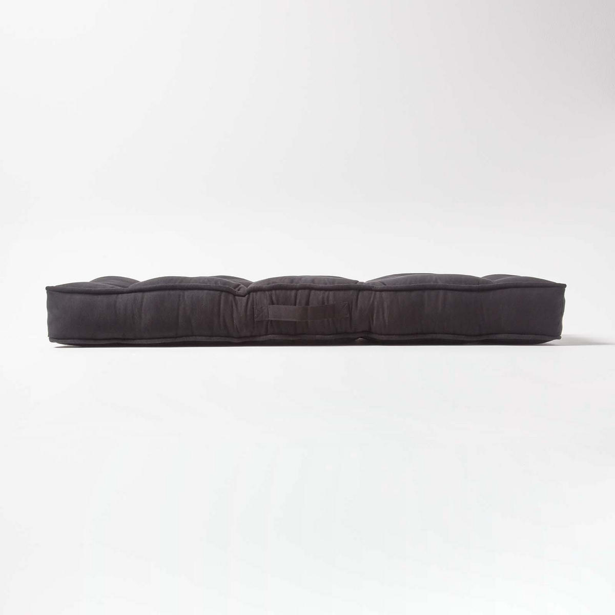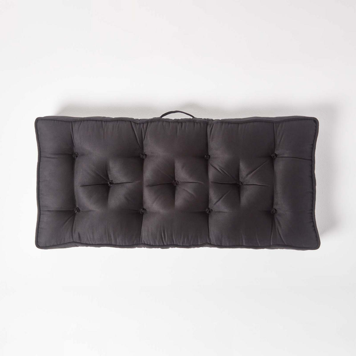 Плотная и упругая подушка сиденья для двухместного дивана с наполнителем из прочного полиэфирного волокна, сохраняющим форму, и бархатистым, мягким и прочным велюровым чехлом. Размер черной подушки: 100 x 48 см, толщина 10 см.