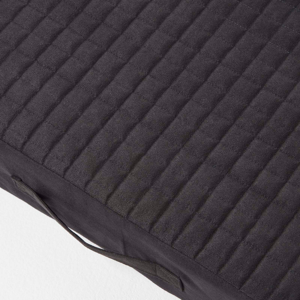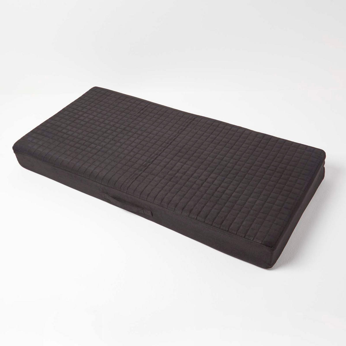 Плотная и жесткая подушка сиденья для двухместных диванов с объемно-стабильным наполнителем из ортопедической пены и мягким и прочным велюровым чехлом. Черная подушка сиденья имеет размеры 100 x 50 см и толщину 10 см.