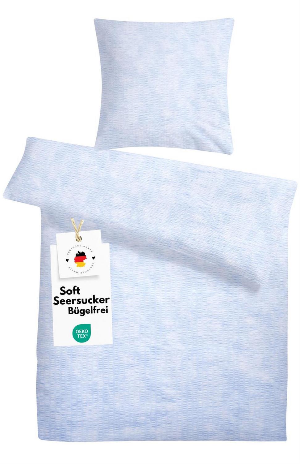 Постельное белье из сирсакера характеризуется характерным эффектом жатости, который представляет собой чередование гладких и присборенных полос ткани. Это постельное белье, не требующее глажки, особенно популярно в теплое время года, поскольку благодаря неровной текстуре оно не прилегает к коже полностью, обеспечивая циркуляцию охлаждающего воздуха. Модели из сирсакера несколько грубее, чем мако-сатин или фланель.