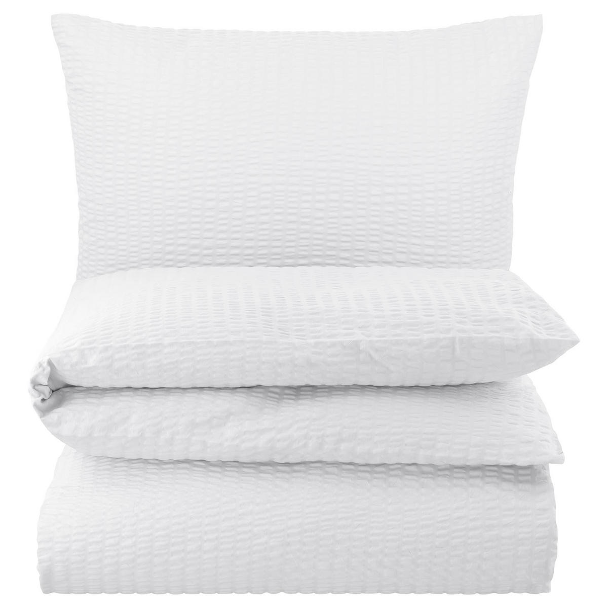 Постельное белье из сирсакера характеризуется характерным эффектом жатости - чередованием гладких и присборенных полос ткани. Это постельное белье, не требующее глажки, особенно популярно в теплое время года, поскольку благодаря неровной текстуре оно не прилегает к коже полностью, обеспечивая циркуляцию охлаждающего воздуха. Модели из сирсакера несколько грубее, чем мако-сатин или фланель.
