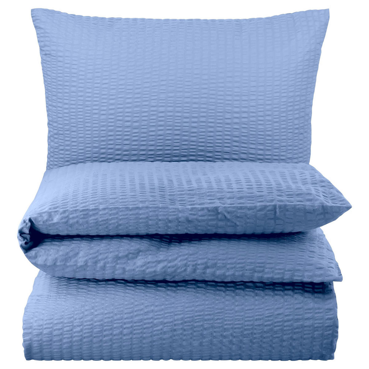 Постельное белье из сирсакера характеризуется характерным эффектом жатости - чередованием гладких и присборенных полос ткани. Это постельное белье, не требующее глажки, особенно популярно в теплое время года, поскольку благодаря неровной текстуре оно не прилегает к коже полностью, обеспечивая циркуляцию охлаждающего воздуха. Модели из сирсакера несколько грубее, чем мако-сатин или фланель.