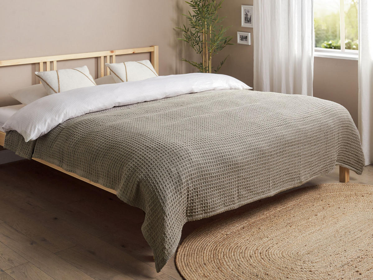 Современное покрывало с вафельной текстурой пике. Плед полностью изготовлен из натурального, прочного хлопкового волокна и украшен модным вафельным узором. Вафельная ткань не только приятна на ощупь, но и проста в уходе, долговечна и не оставляет ворса. Благодаря своей мягкой поверхности плед для дивана идеально подходит для того, чтобы уютно устроиться с книгой или насладиться дневным сном. Он также может служить простым украшением для вашей комнаты.
