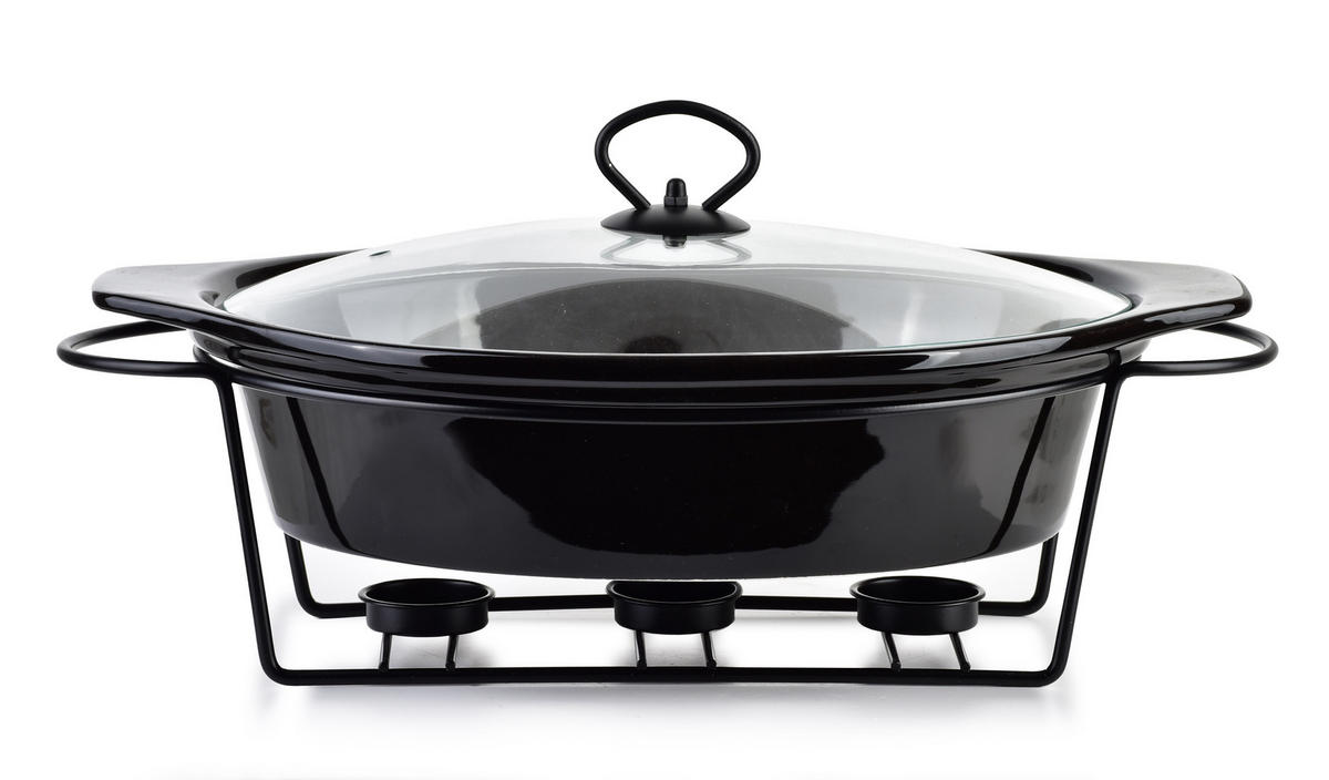 Овальное сервировочное блюдо с подогревом из серии MODERN KITCHEN от Allesken by MONDEX - идеальное решение для подачи горячих блюд, которые долго сохраняют температуру. Встроенная металлическая подставка с местом для чайных свечей обеспечит длительное сохранение тепла, делая это изделие незаменимым спутником для встреч и торжеств.