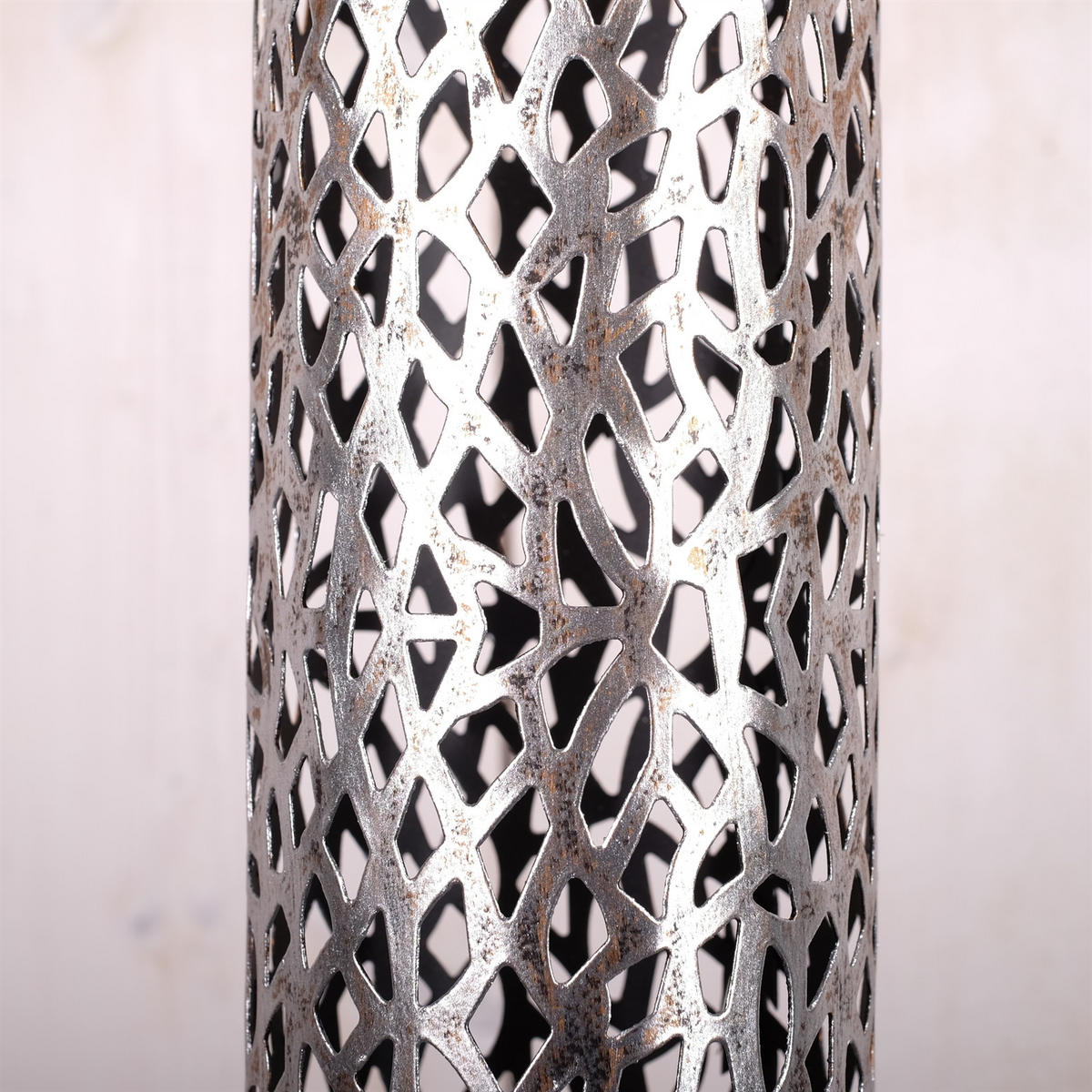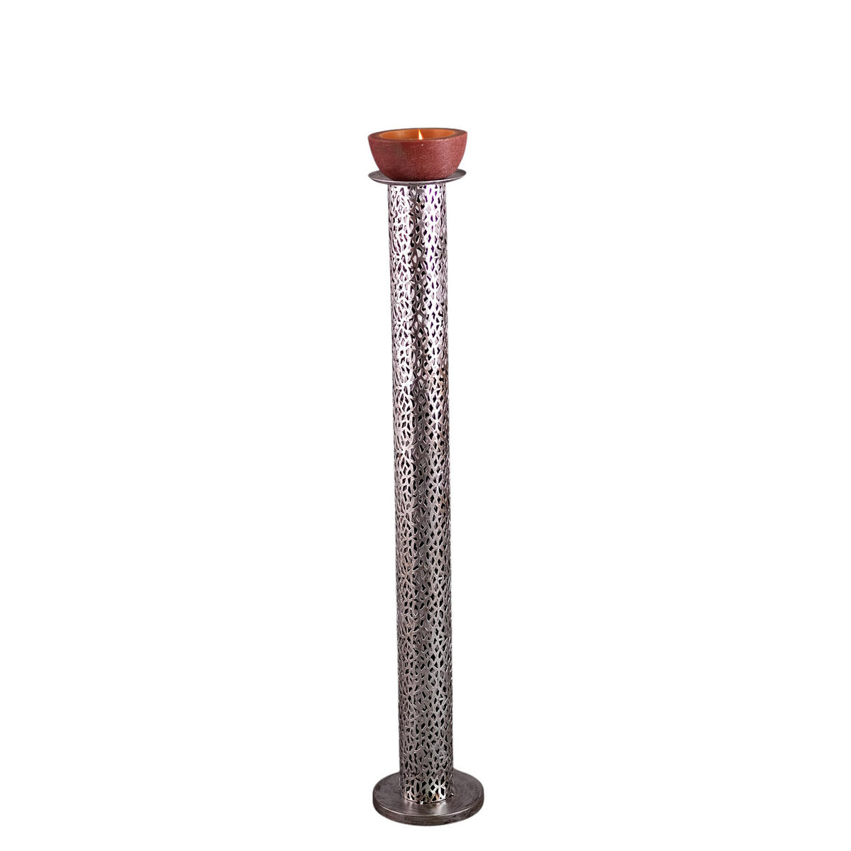 Элегантная металлическая напольная подставка с отделкой под античное серебро мгновенно преобразит атмосферу в любой гостиной. Благодаря стильной отделке под античное серебро, она создаст в вашем доме атмосферу великолепия в сочетании с красивой свечой. Подставка идеально гармонирует с изысканным винтажным стилем интерьера. Подсвечник имеет замечательную высоту около 100 см, что делает его идеальным для размещения на уровне дивана.