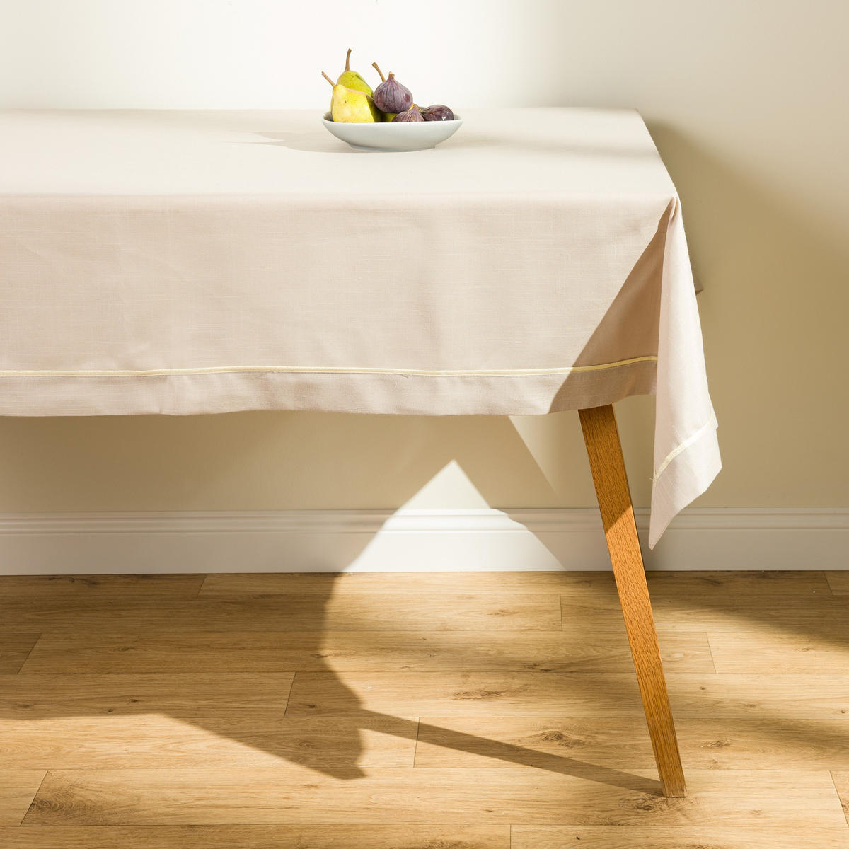 Откройте для себя декоративную скатерть Tideno элегантного бежевого цвета. Размер скатерти 130 x 180 см идеально подходит для любого стола и добавит стильный штрих в вашу атмосферу. Высококачественный полиэстер подходит для бережного ухода при температуре 30 °C.