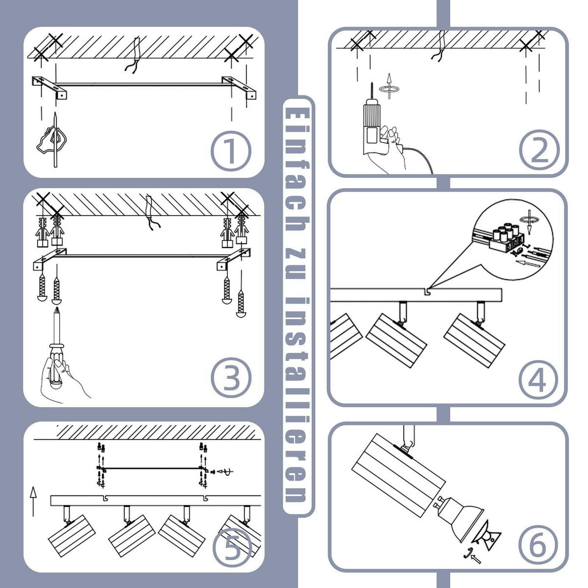 - СТАНДАРТНЫЙ ЦОКОЛЬ GU10: Этот потолочный светильник на 4 лампочки имеет стандартный цоколь GU10 для различных типов стандартных лампочек GU10. Максимальная мощность составляет 25 Вт x 4. Заменяемые лампочки. Этот ретро-потолочный светильник подходит для всех энергосберегающих ламп GU10,