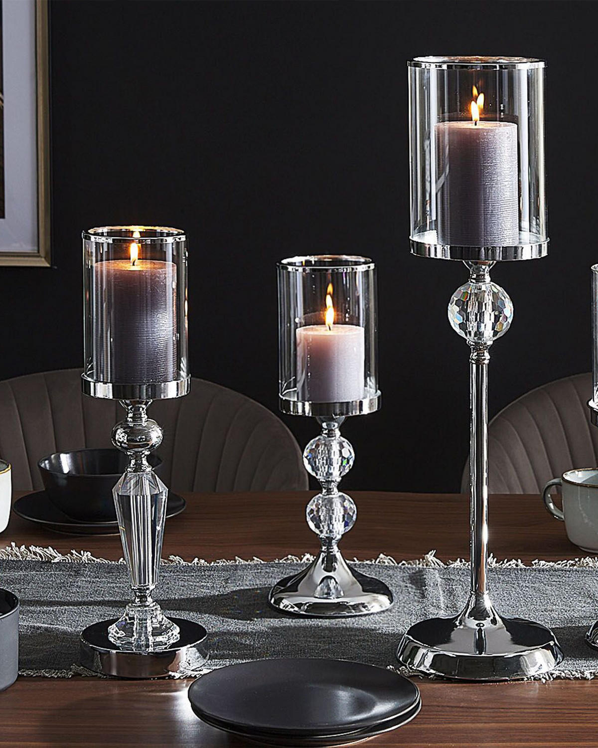 Классический подсвечник для создания особого уюта. Добавьте в свой дом особый шарм с этим гламурным акцентом. Подсвечник изготовлен из стекла и установлен на изящном металлическом основании элегантного серебряного цвета. Основание очаровательно украшено искусственным бриллиантом и изящным круглым элементом. Этот декоративный предмет идеально вписывается в традиционные, гламурные или винтажные стили интерьера.