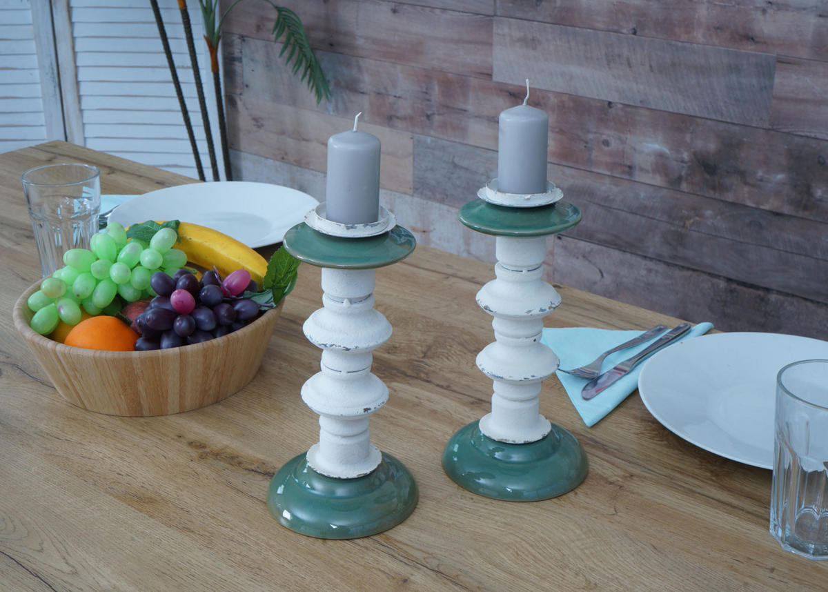 Добавьте в свой дом немного деревенского очарования с нашим набором из двух подсвечников в декоративном стиле потертый шик. Наши подсвечники поставляются полностью собранными, поэтому вы можете сразу же разместить на них свои любимые свечи, чтобы создать уютную и непринужденную атмосферу. Используйте их как акцент на обеденном столе, буфете или каминной полке, чтобы добавить стиль и уют в любую комнату. Не упустите возможность наполнить свой дом элегантностью и очарованием.