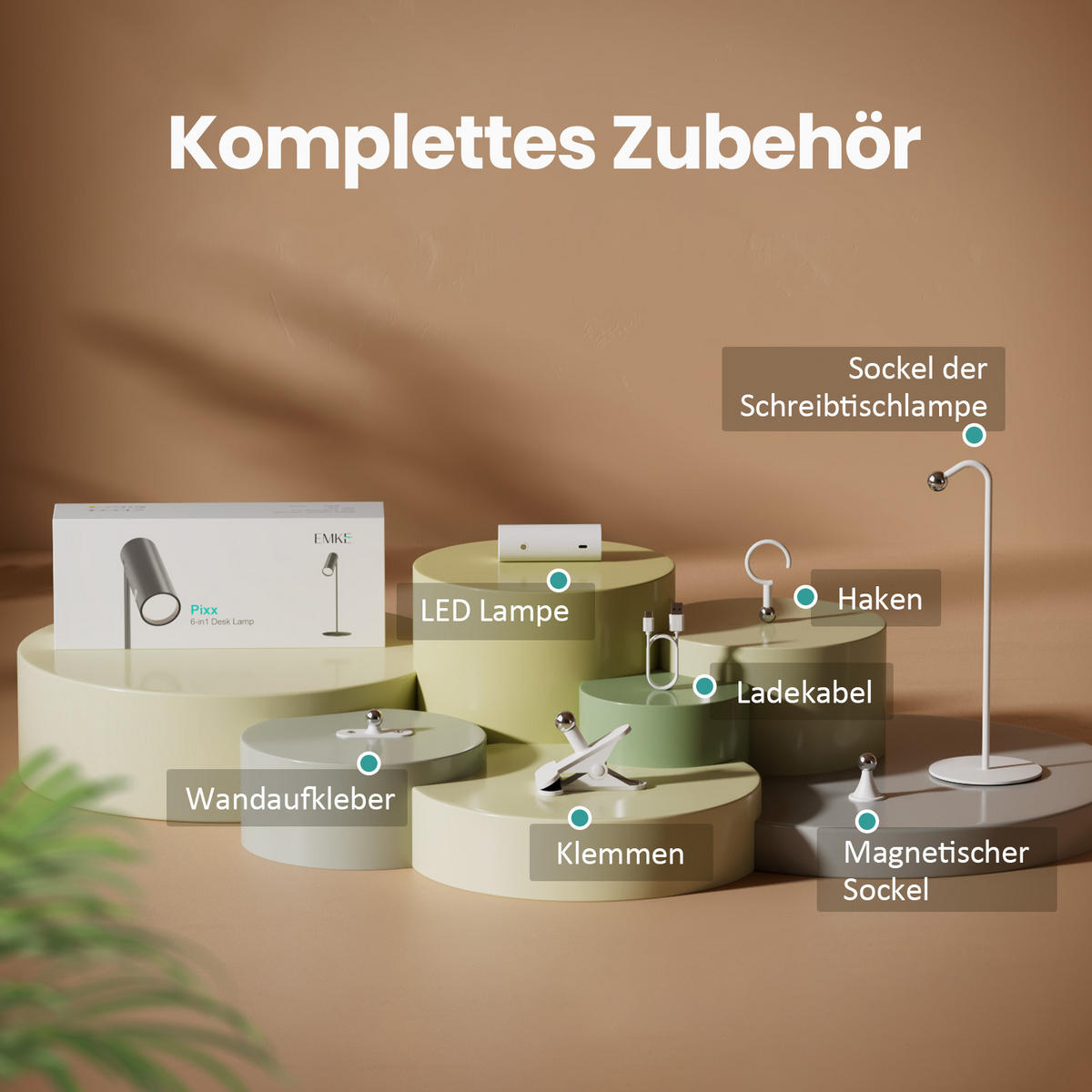 Беспроводная настольная светодиодная лампа EMKE станет идеальным спутником для вашего дома, будь то офис, гостиная или спальня. Она идеально адаптируется к вашим потребностям и всегда обеспечивает правильное освещение. Вращающийся на 360° магнитный шар позволяет гибко регулировать направление света - используйте ее как настольную лампу, настенный светильник или настольную лампу.