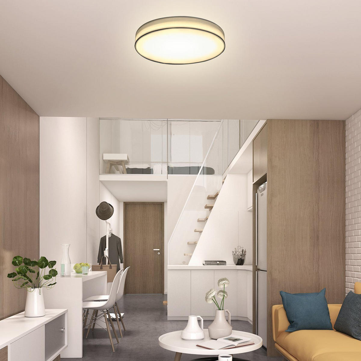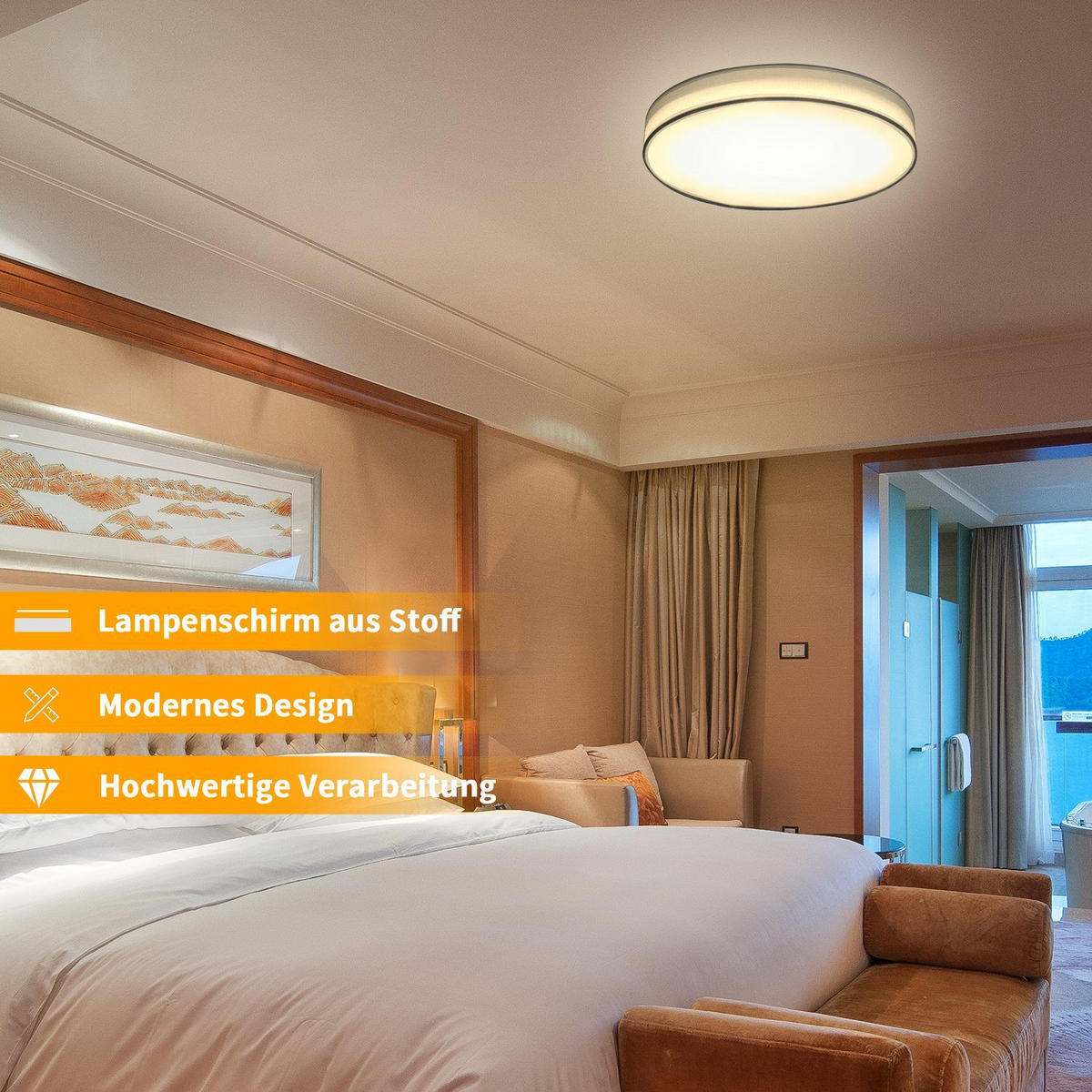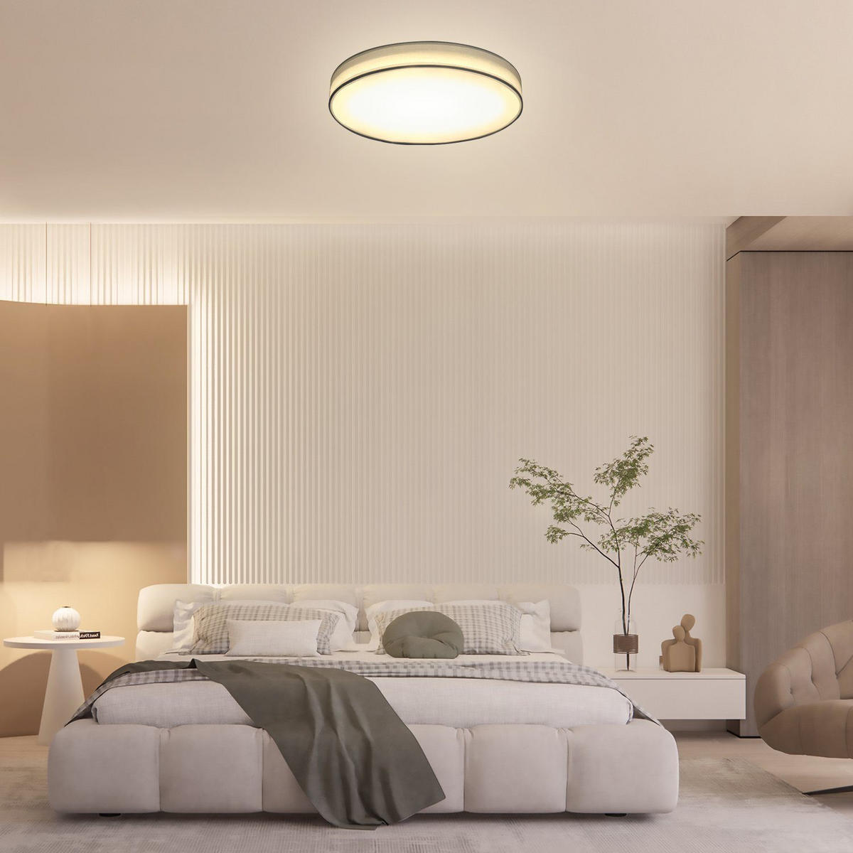 - Мягкий свет 3000K:Передовая технология светодиодного освещения обеспечивает непрерывный световой поток, а круглый потолочный светильник с тканевым абажуром создает мягкий, рассеянный свет без мерцания,