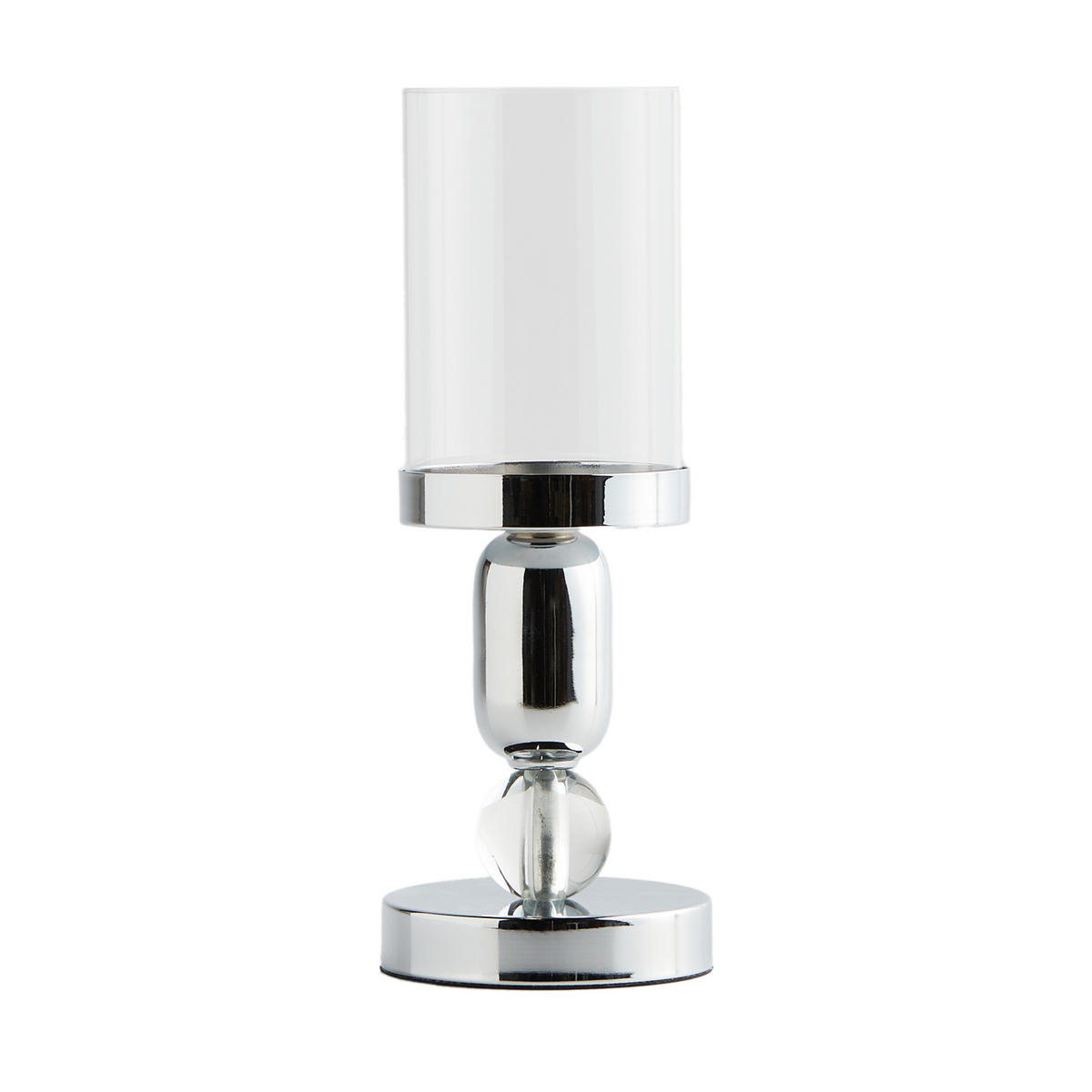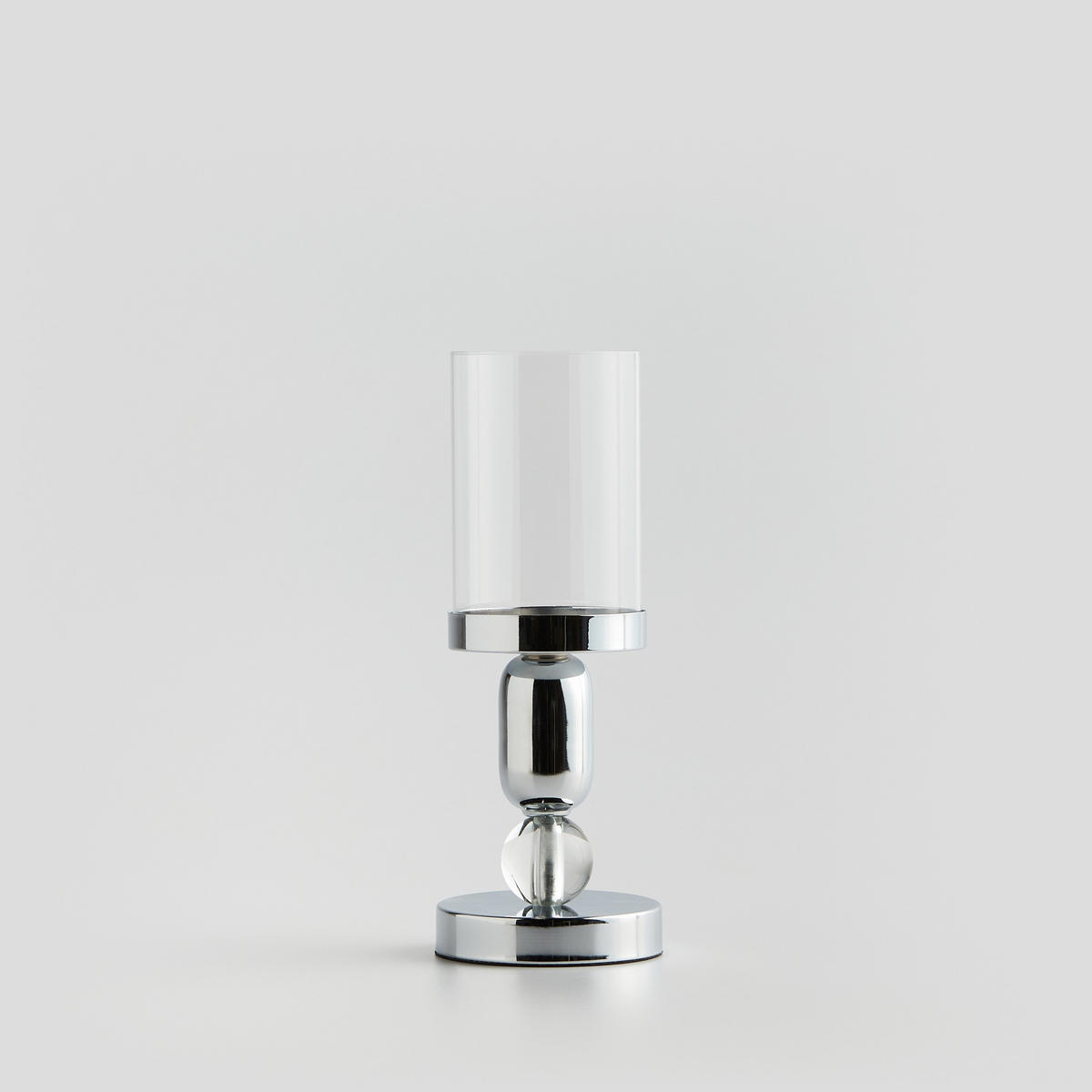 Элегантный железный подсвечник с изящными стеклянными элементами стильного серебристого цвета станет прекрасным декоративным акцентом для самых разных интерьеров. Он идеально подходит для подсвечников-колонн и добавит помещению блеска и изысканного очарования.