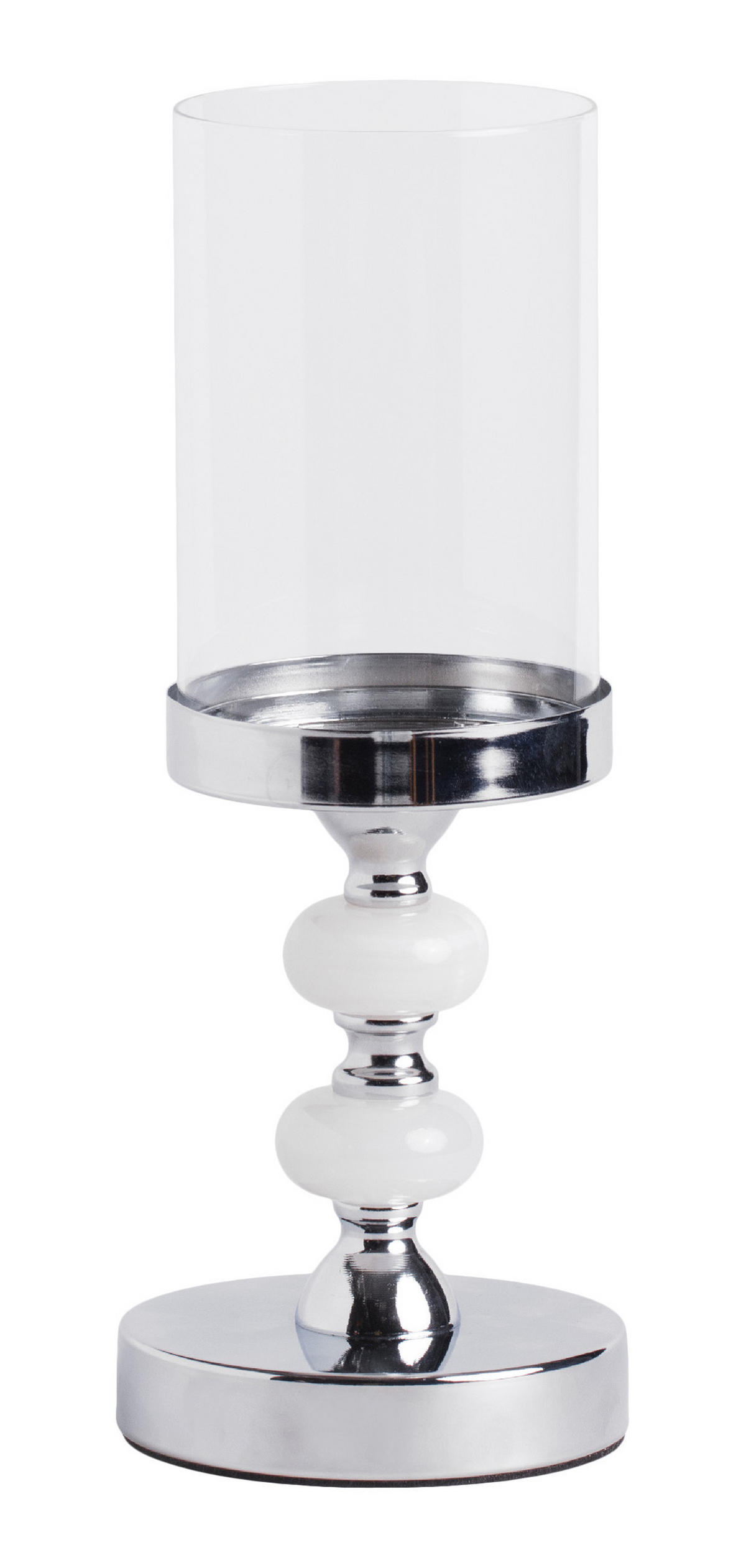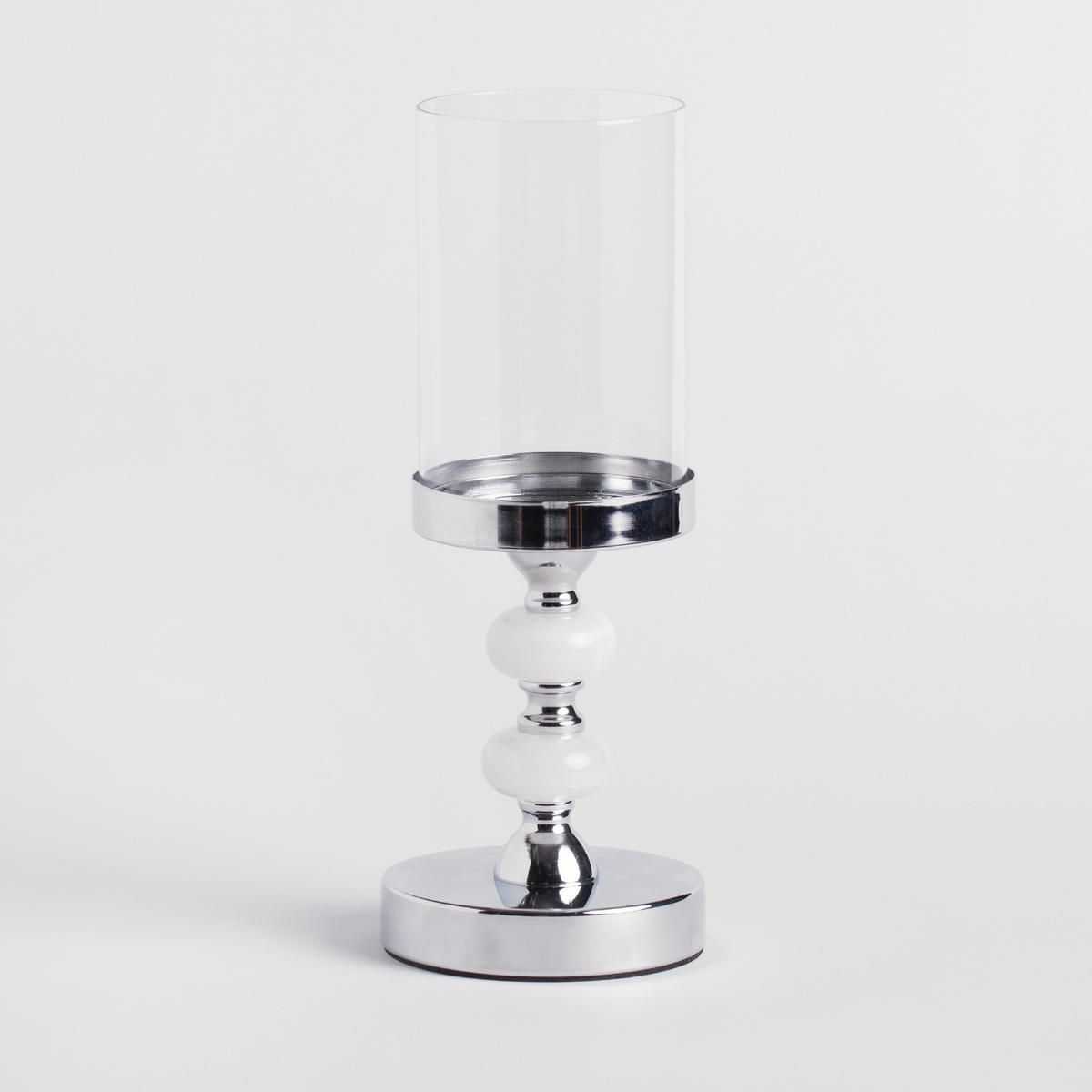 Подсвечник из серебристого металла со стеклом, высотой 31 см и диаметром 12 см. Элегантный и современный дизайн делает его эффектным элементом декора любого интерьера. Он идеально подходит для создания уютной атмосферы на званых ужинах или торжественных мероприятиях. Он прекрасно подчеркивает сияние свечи и добавляет тепла и стиля в любую комнату.