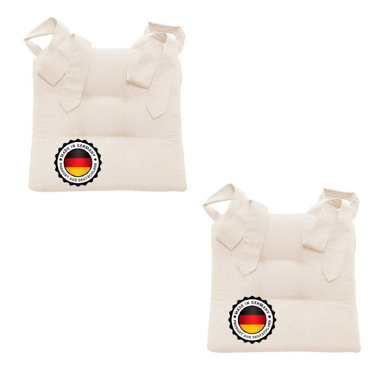 Две подушки для стульев размером примерно 42 x 46 x 7 см.