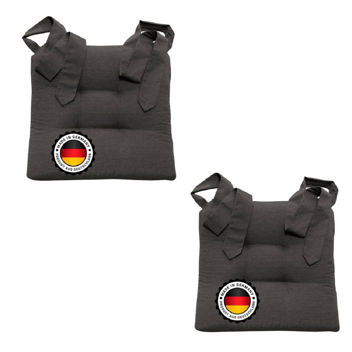 Две подушки для стульев размером примерно 42 x 46 x 7 см.