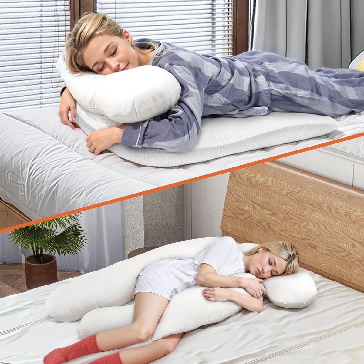 2. Улучшенная функциональность: в отличие от традиционных подушек для сна на боку U-образной формы, которые ограничивают движение во время сна, наша подушка для тела H-образной формы и отдельный подголовник позволяют легко двигать руками и менять сторону. Оптимизированный наклон клиновидной подушки обеспечивает мягкую поддержку, которая отвечает разнообразным потребностям спящих на боку.