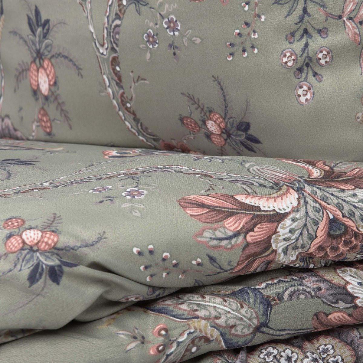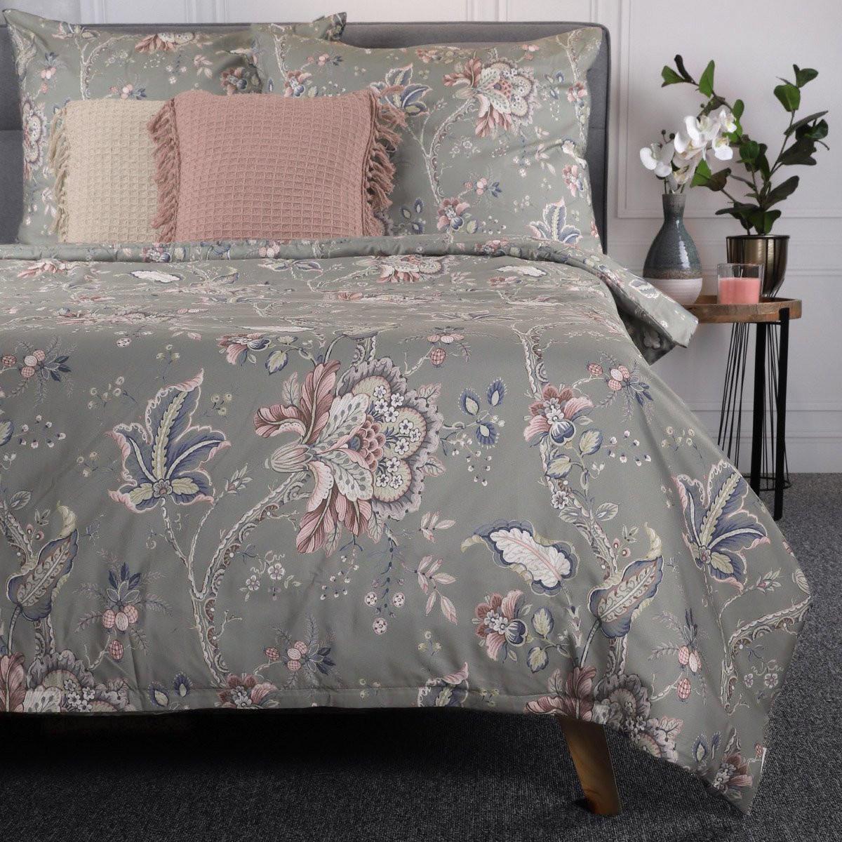 Этот комплект украшен потрясающим цветочным принтом в сочетании приглушенных, но идеально подобранных цветов на серебристо-сером фоне. Помимо изысканного дизайна, комплект включает пододеяльник размером 200x220 см и две наволочки размером 70x80 см, каждая из которых застегивается на молнию.