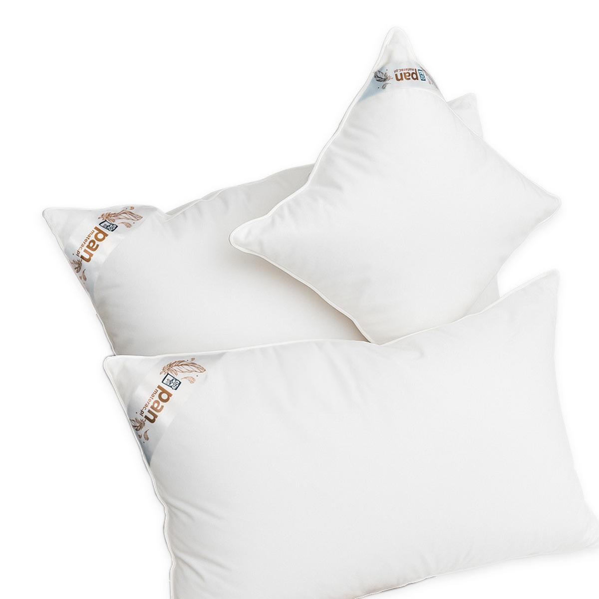 Модель 40x40 см имеет наполнитель, состоящий на 90% из пуха и на 10% из пера. Модели размером 50x70 см и 70x80 см, в свою очередь, имеют трехкамерную структуру, что обеспечивает лучшую поддержку головы и шейного отдела позвоночника. Внутренний слой заполнен смесью пуха и пера в соотношении 50% + 50% для дополнительной устойчивости, а внешние слои, обеспечивающие роскошную мягкость, содержат 90% пуха и 10% пера.