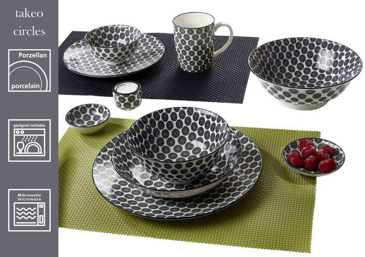 Takeo позволяет стильно сочетать и комбинировать дизайны типичных азиатских рисовых мисок. В отличие от традиционных, узоры Takeo представлены исключительно в черном цвете, любимом пуристами и минималистами, что придает посуде простой скандинавский штрих. Особая привлекательность заключается в том, что узоры нанесены на всю поверхность всех предметов посуды, а на некоторых предметах - как внутри, так и снаружи, что позволяет по-настоящему подчеркнуть красоту орнамента.